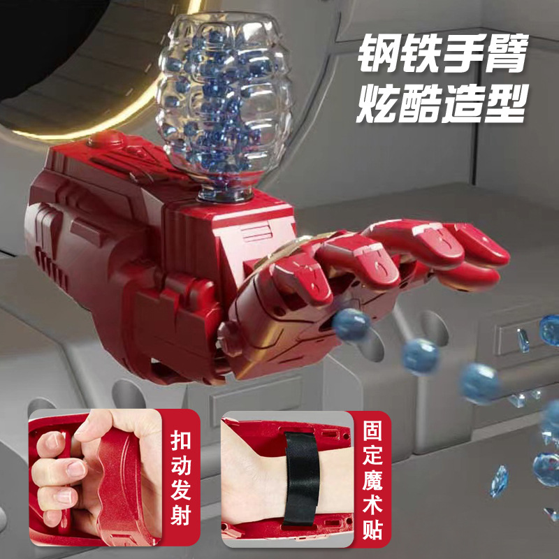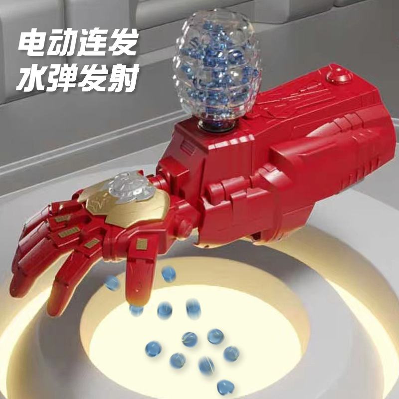 钢铁侠机械手臂电动发射器玩具儿童男孩可穿戴连发水弹对战水晶珠