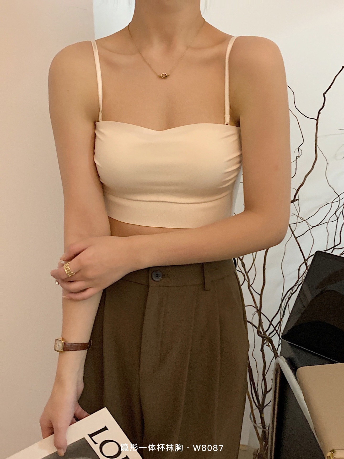 W8087团购爆款隐形一体杯抹胸内衣女性感细肩带防走光无痕文胸罩