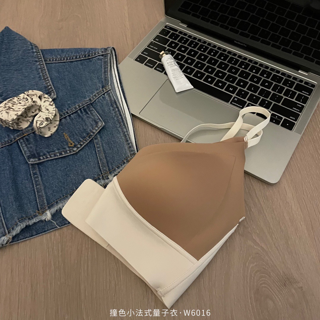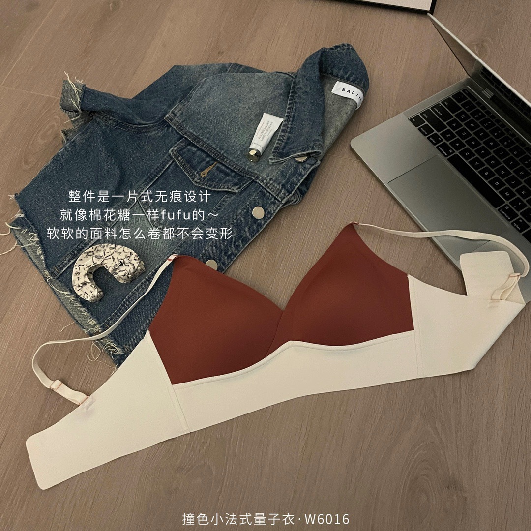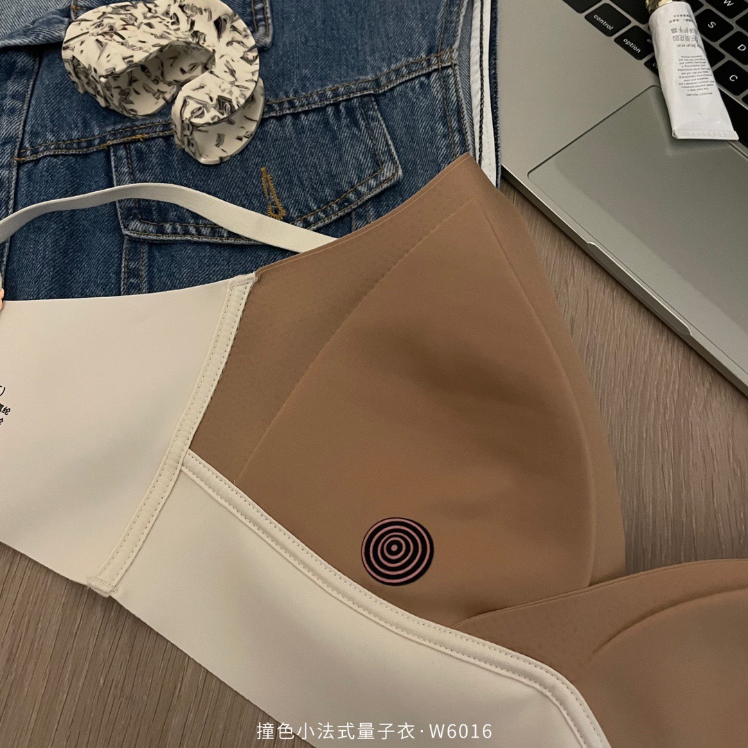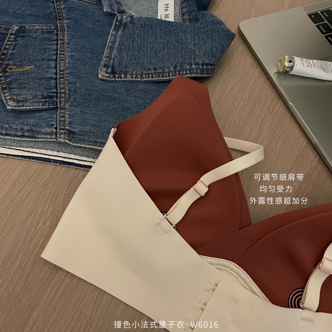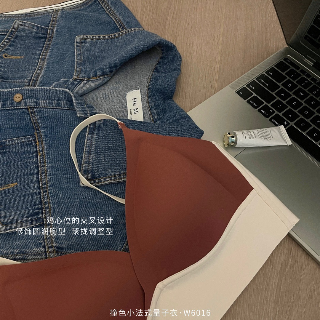 直播团购撞色小法式量子内衣女士无痕交叉性感运动调整文胸W6016