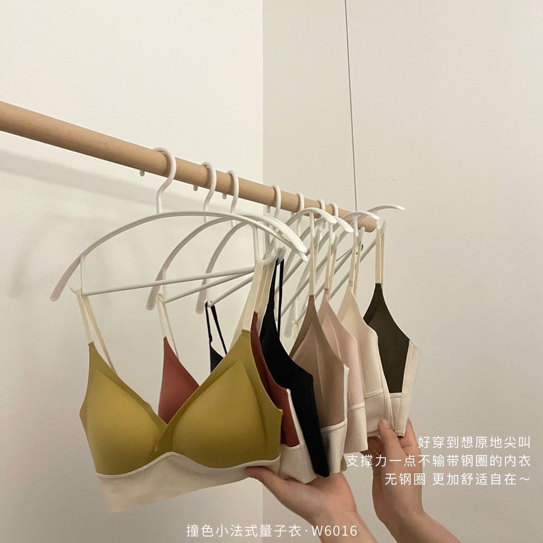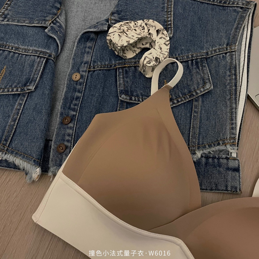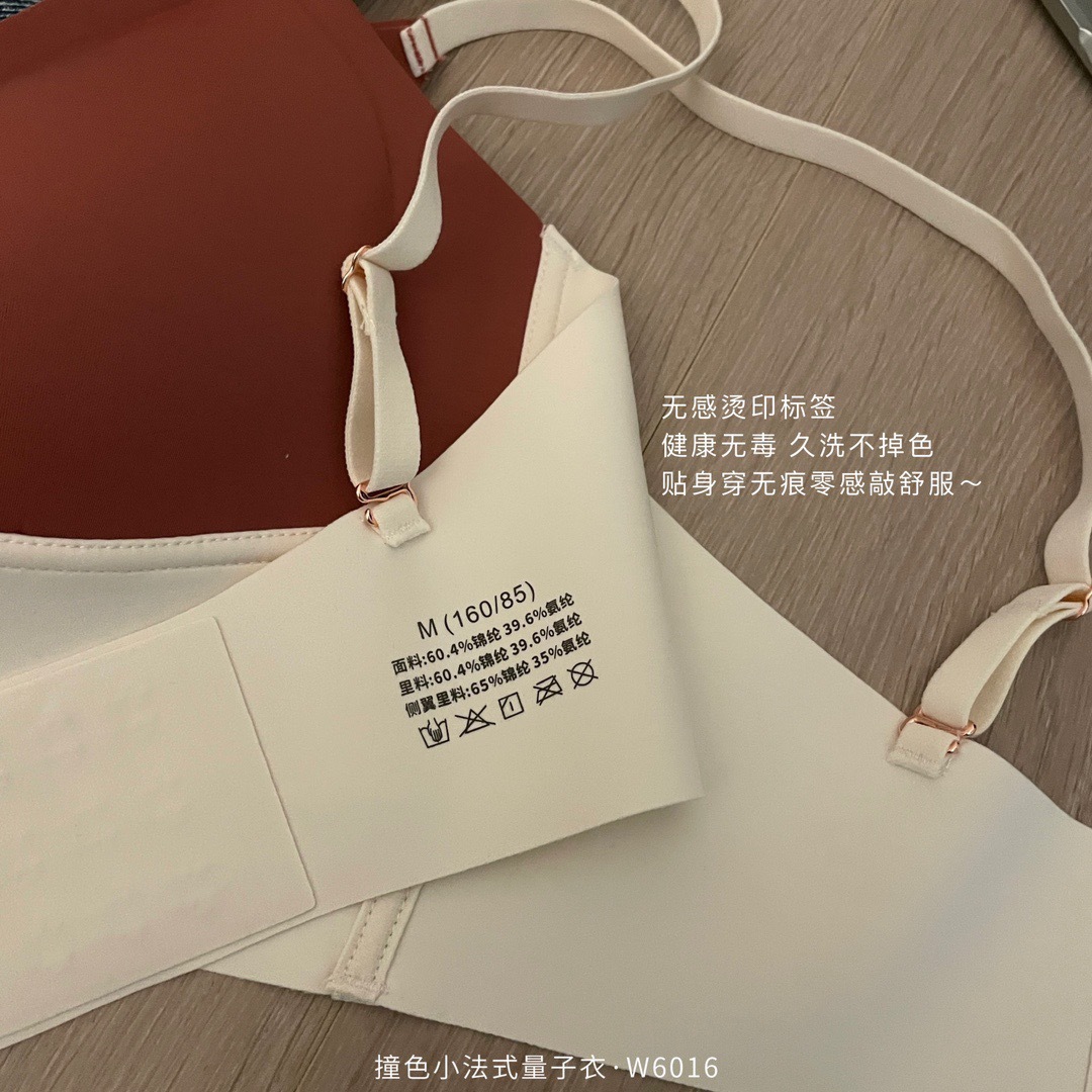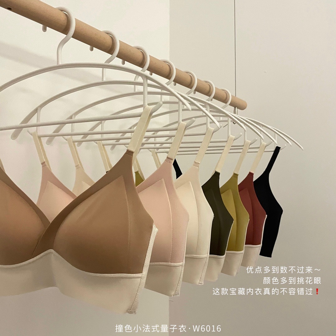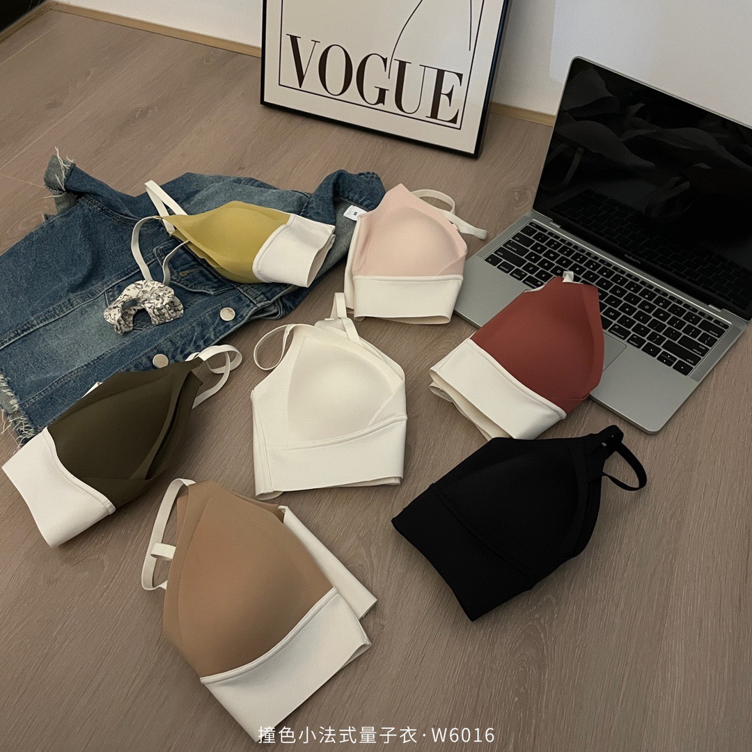直播团购撞色小法式量子内衣女士无痕交叉性感运动调整文胸W6016