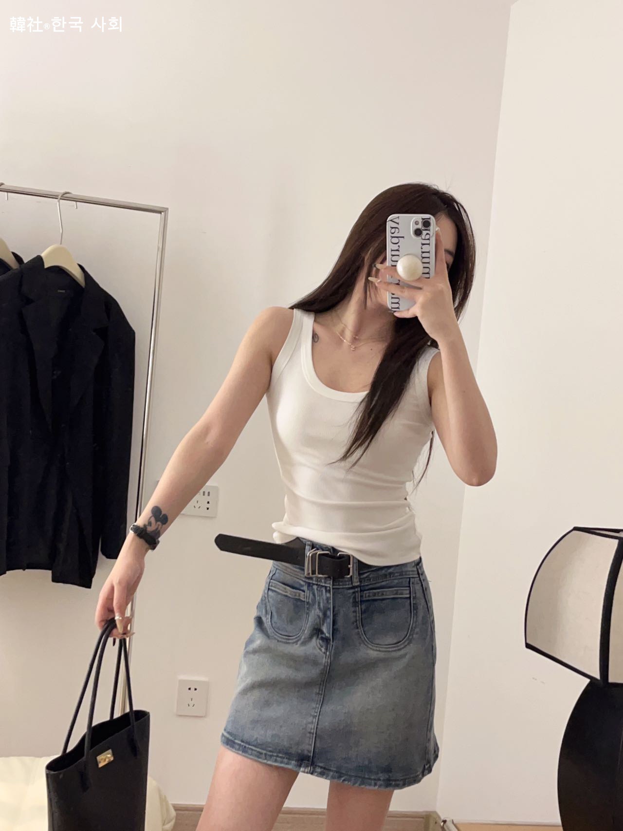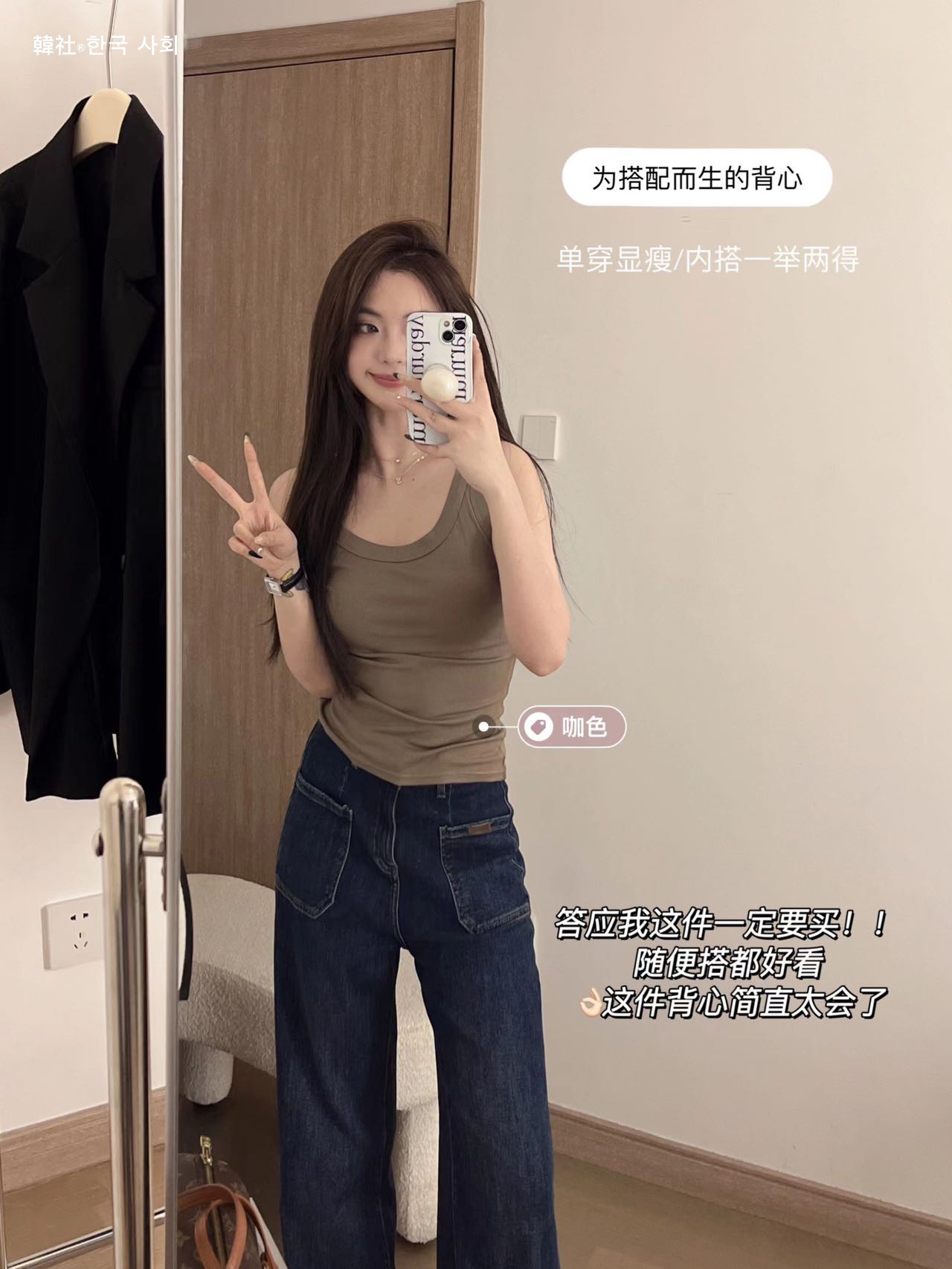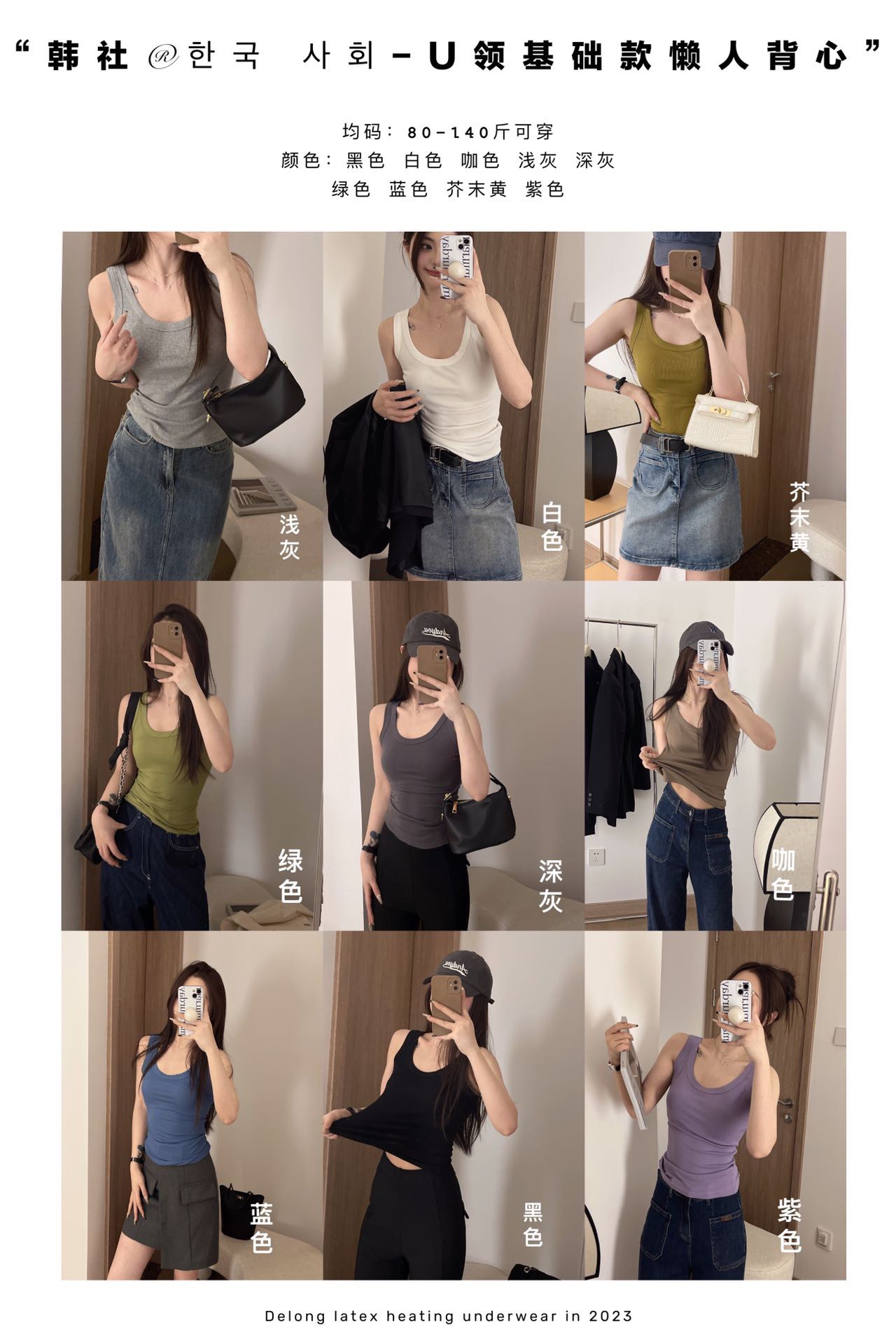 直播团购东大门韩社U领基础款懒人背心夏季透气百搭女士纯色背心