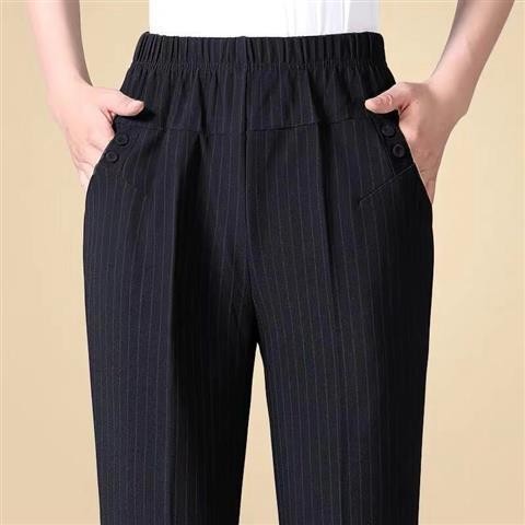 妈妈夏天裤子薄款中老年人夏季冰丝休闲九分裤宽松高腰奶奶装女裤