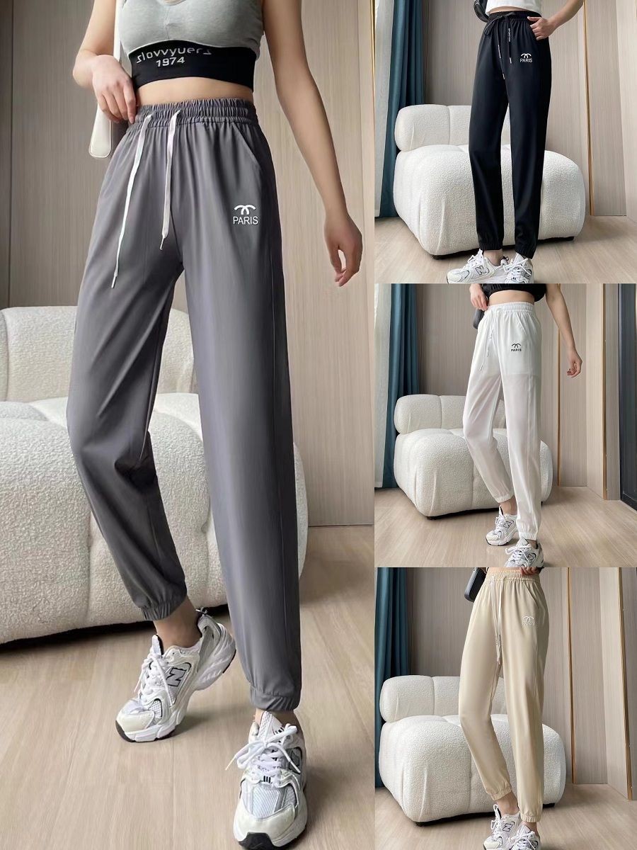 冰丝运动裤女夏季薄款跑步宽松休闲黑色束脚萝卜防晒九分速干裤子