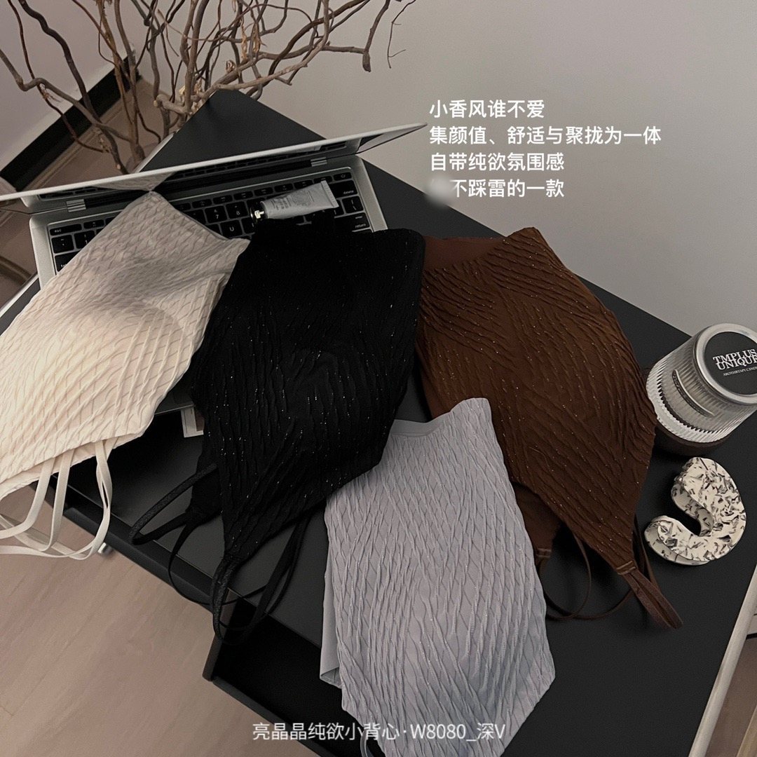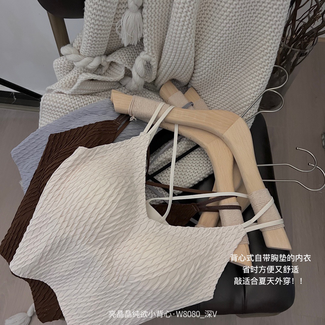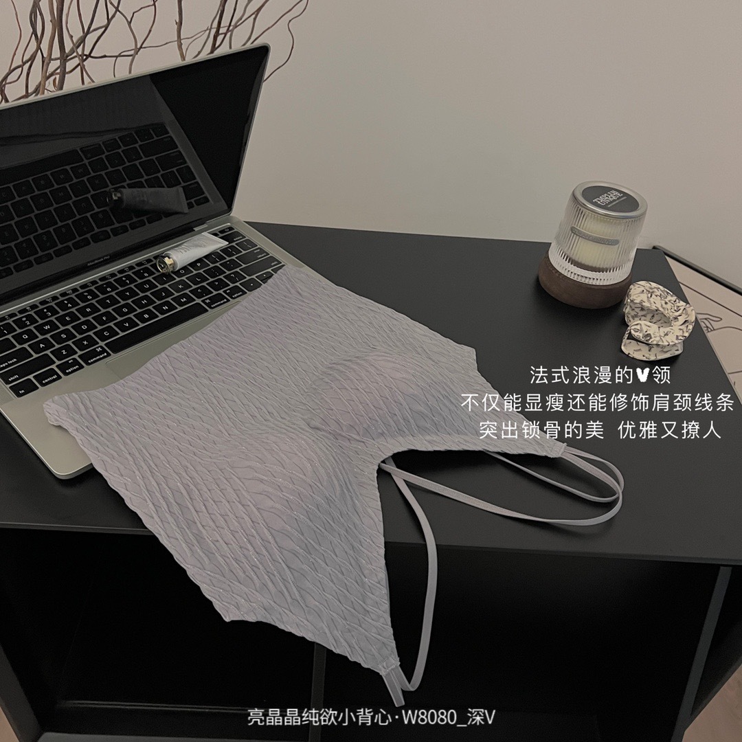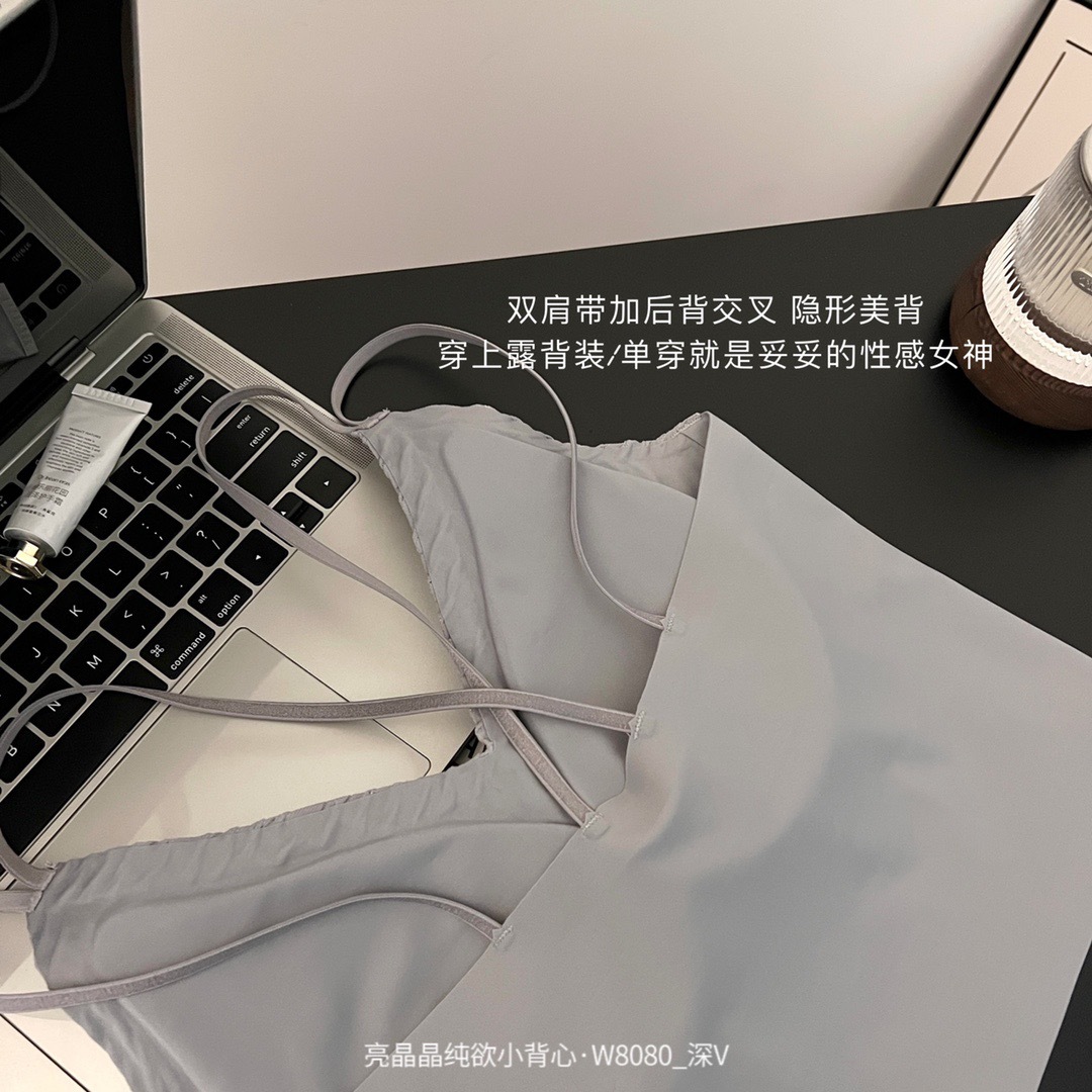 直播团购新款亮晶晶纯欲小背心W8080深V百搭内衣带胸垫女士背心