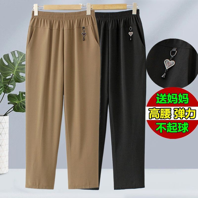 妈妈裤2023夏季薄款休闲九分裤高腰宽松中老年人女裤松紧腰直筒裤