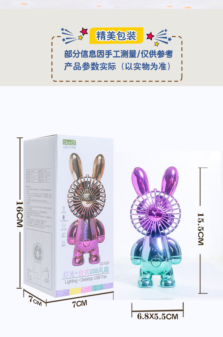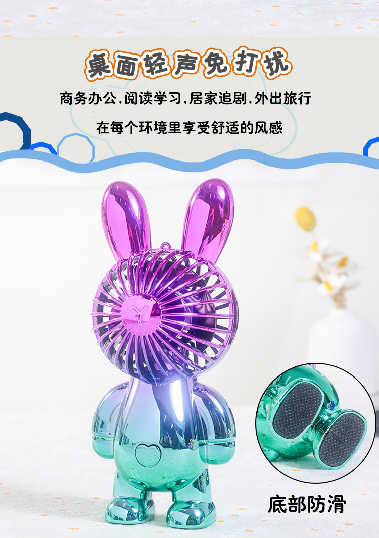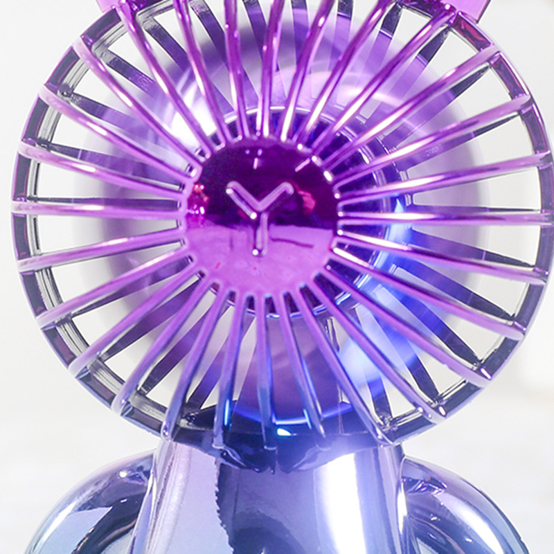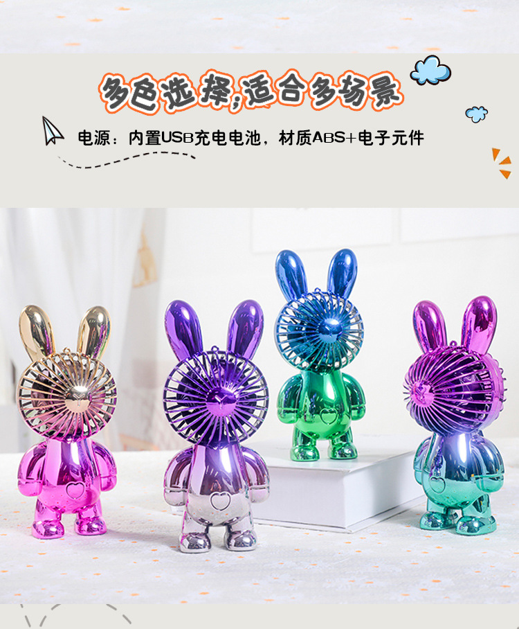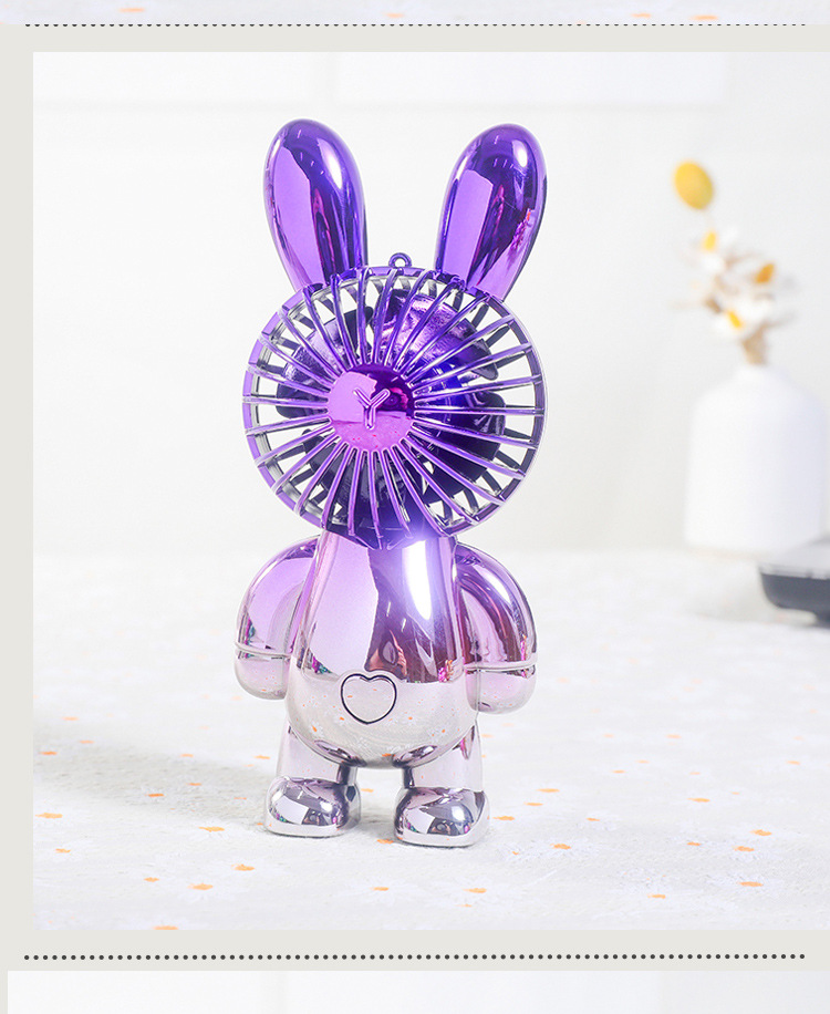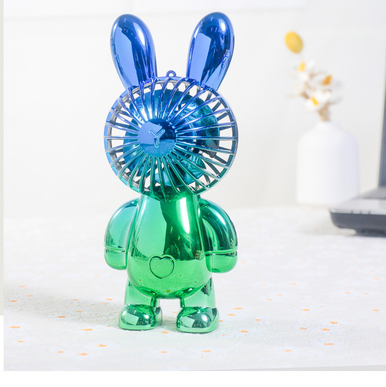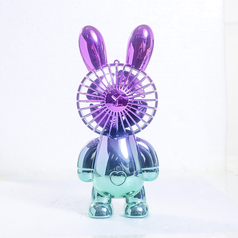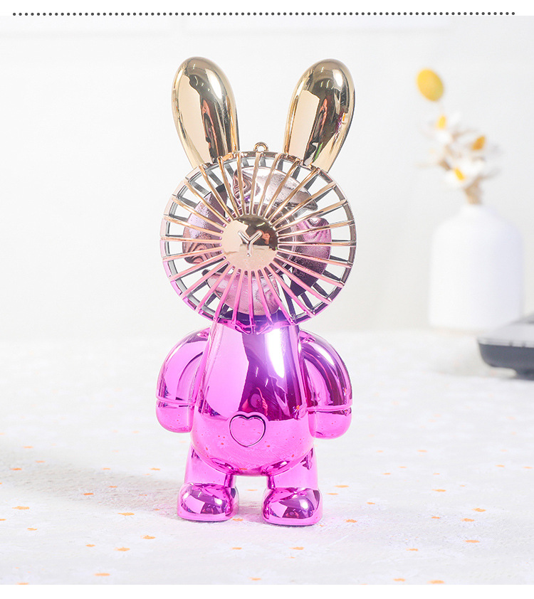 网红卡通小兔子渐变色电镀手持灯光usb充电风扇 户外可爱口袋风扇