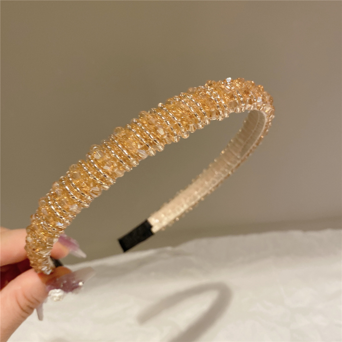 年韩版水晶串珠宽边发箍气质优雅轻奢外出头箍压发高颅顶发饰