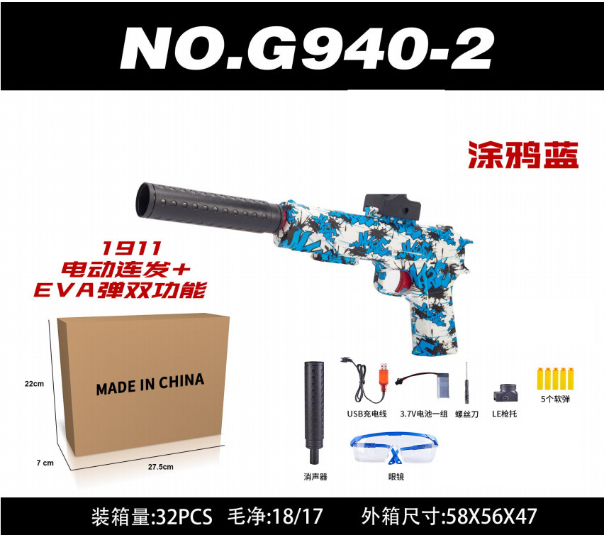 gelgunblaster亚马逊电动高速连发射AK47格洛克416涂鸦对战玩具枪