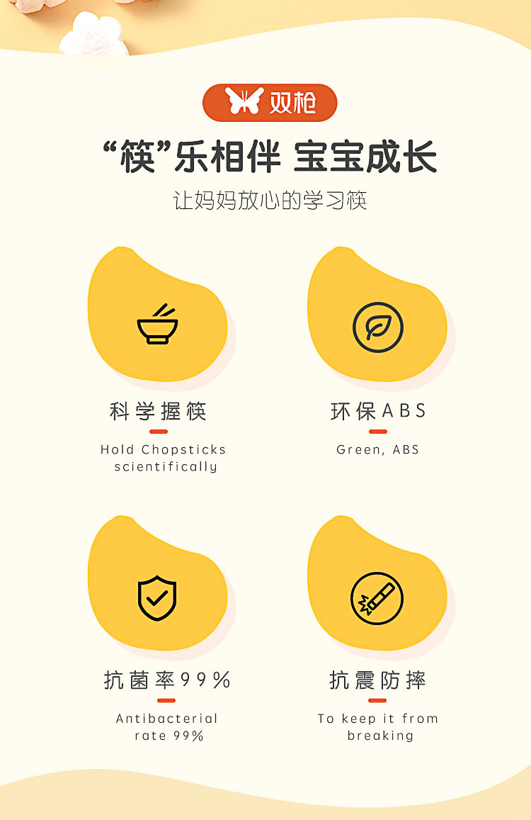 双枪儿童筷子虎口训练筷2 3 6-12岁宝宝学习练习筷幼儿练习餐具