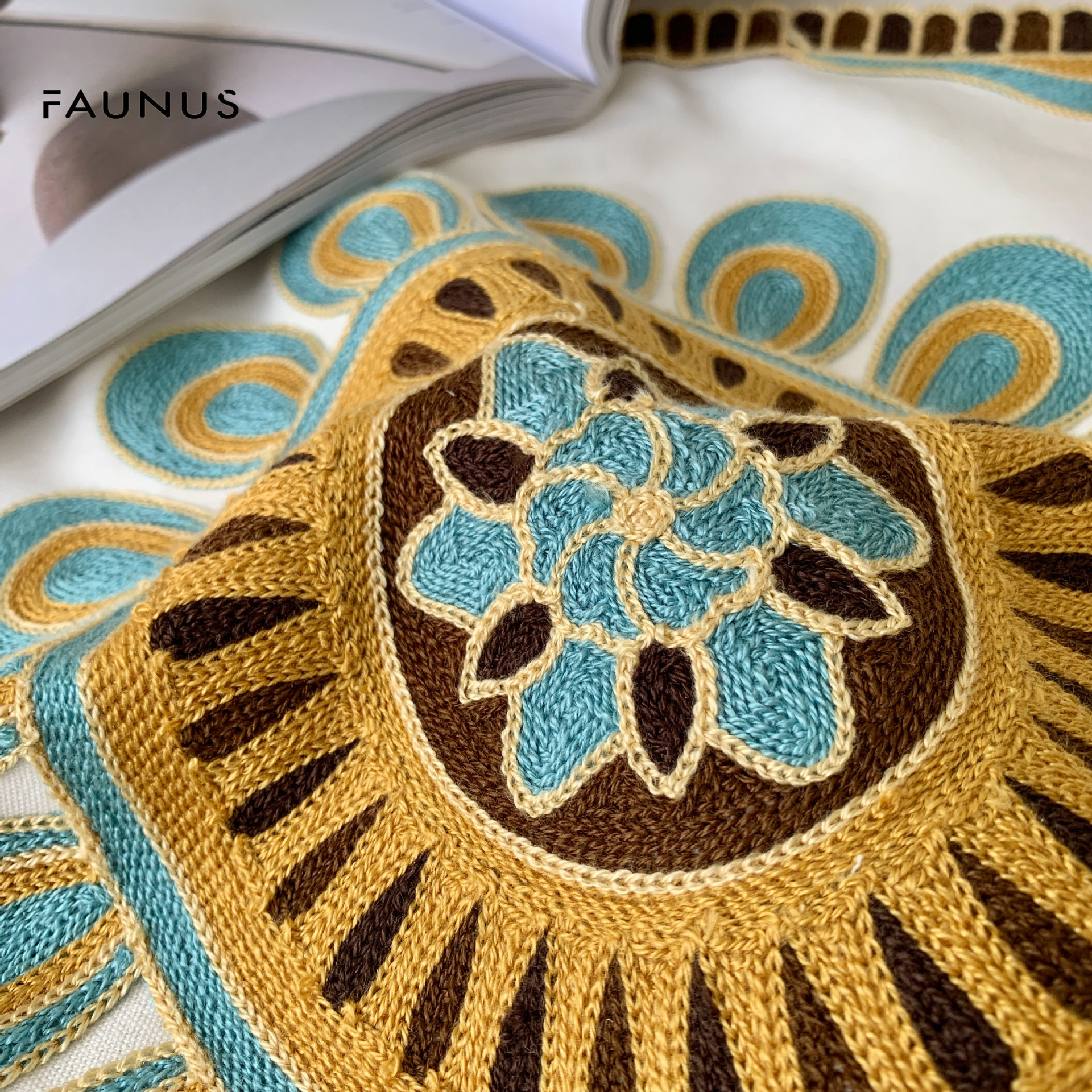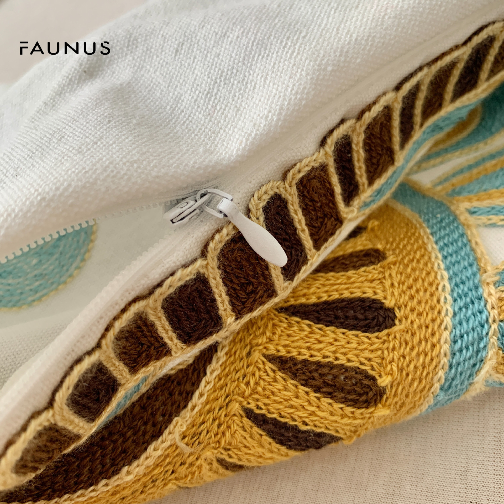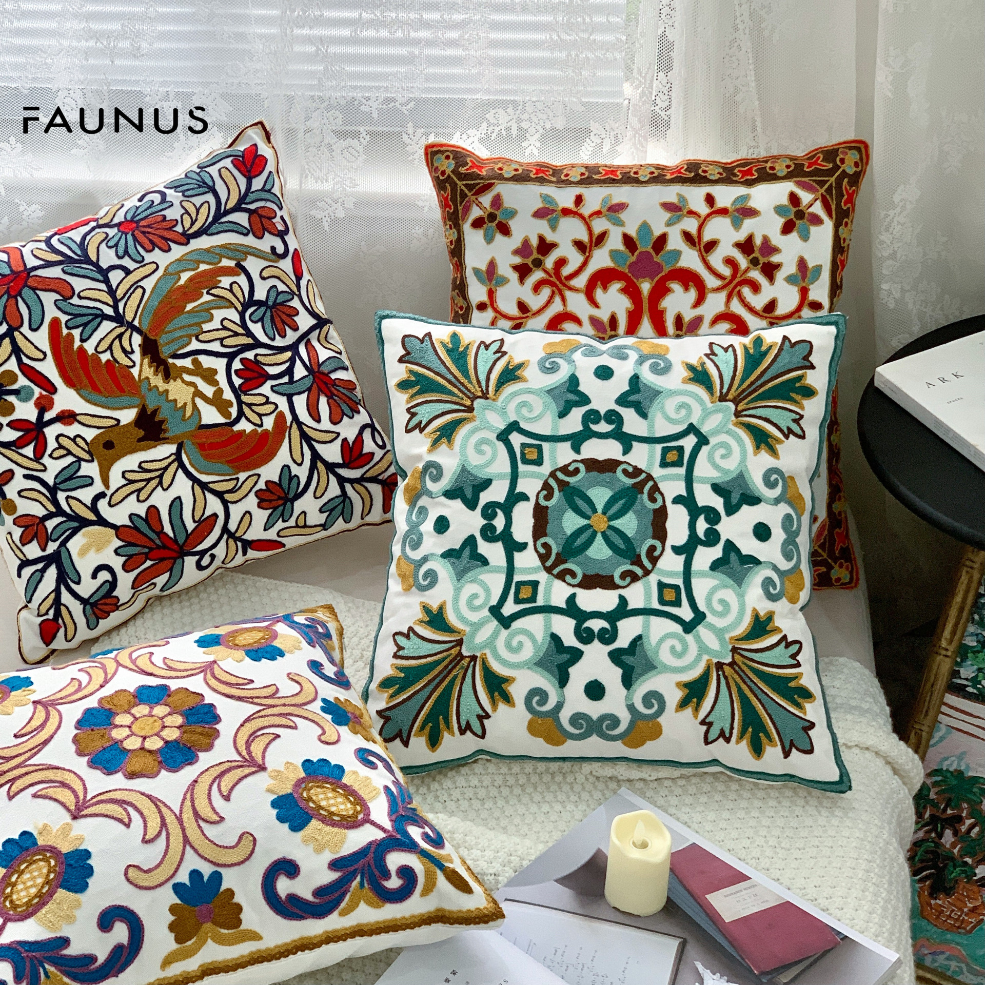 厂家来图直销花卉刺绣民族风展会毛线绣美式帆布 绣花靠垫抱枕
