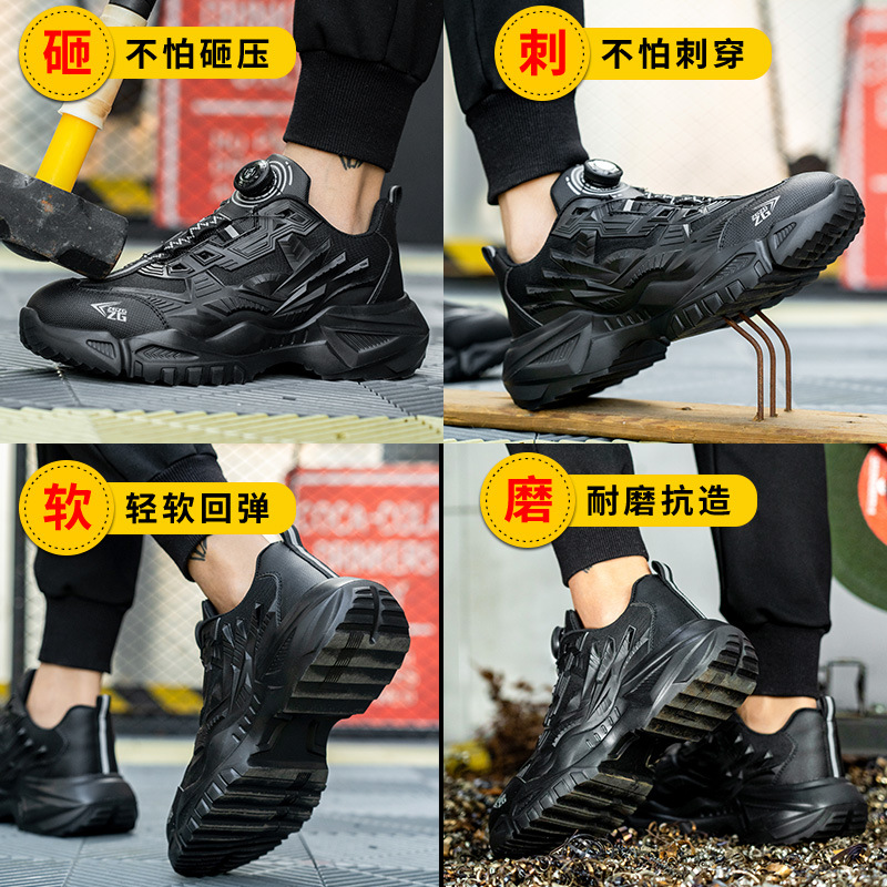 跨境劳保鞋男女防砸防刺穿夏季男款懒人安全鞋钢丝旋转扣免系鞋带