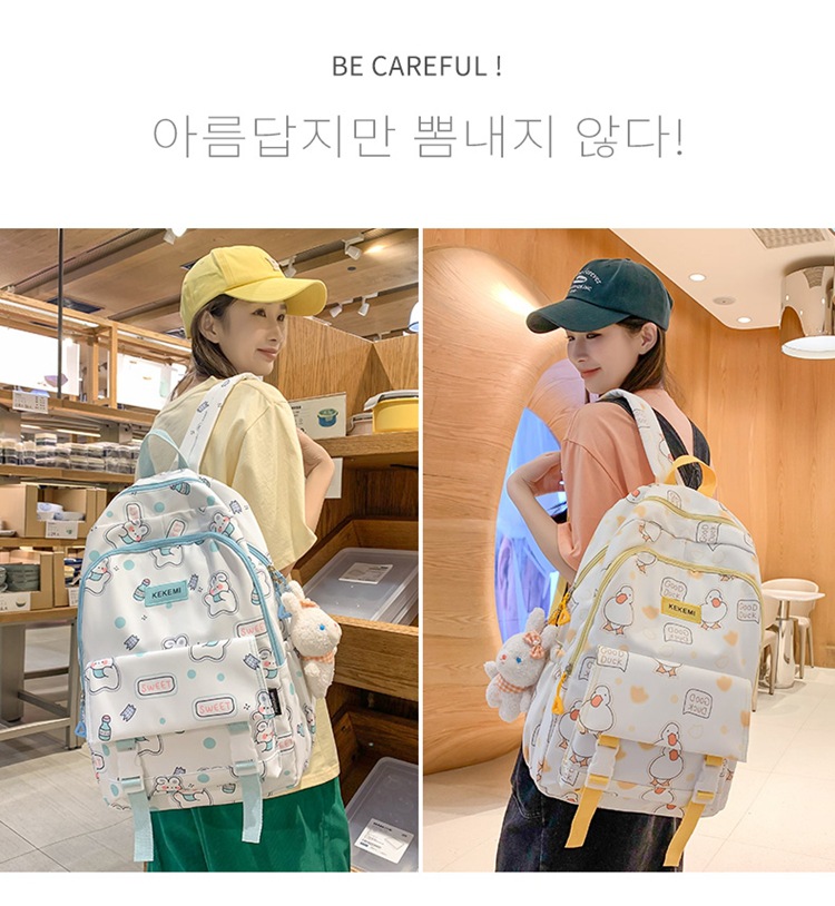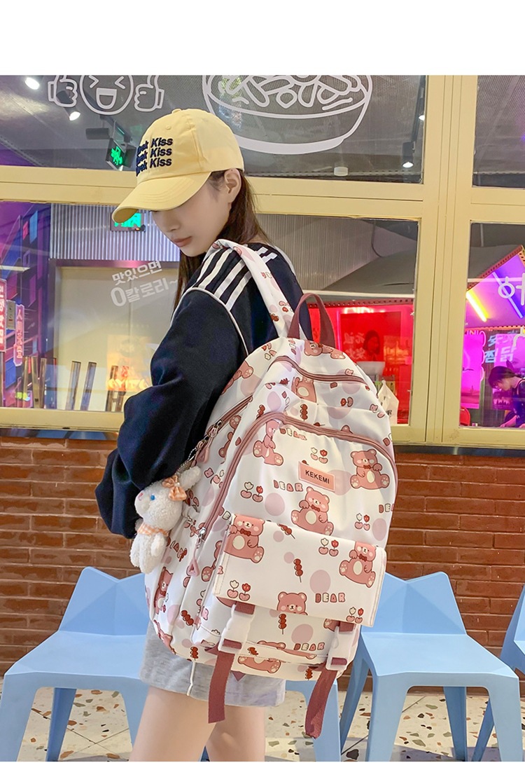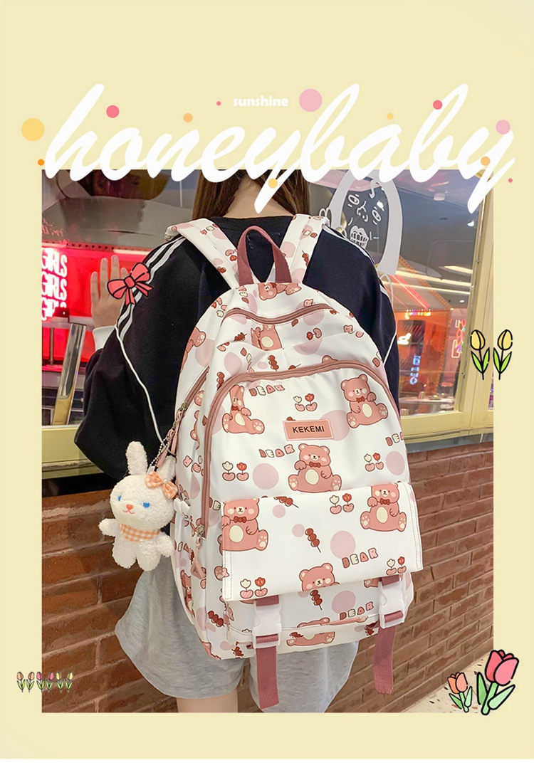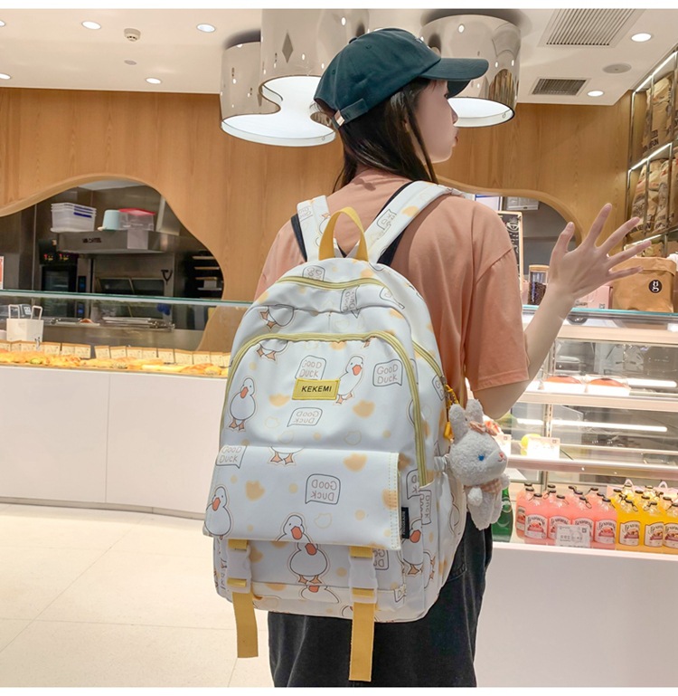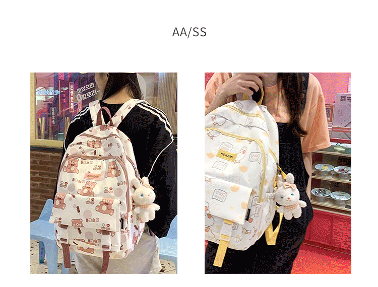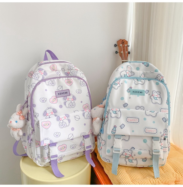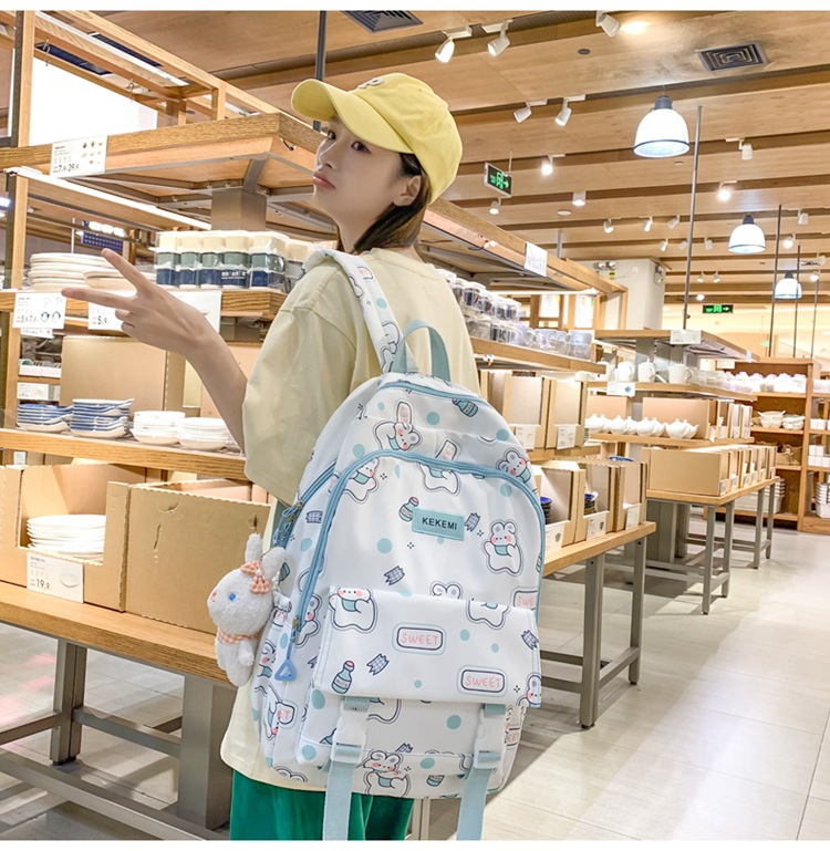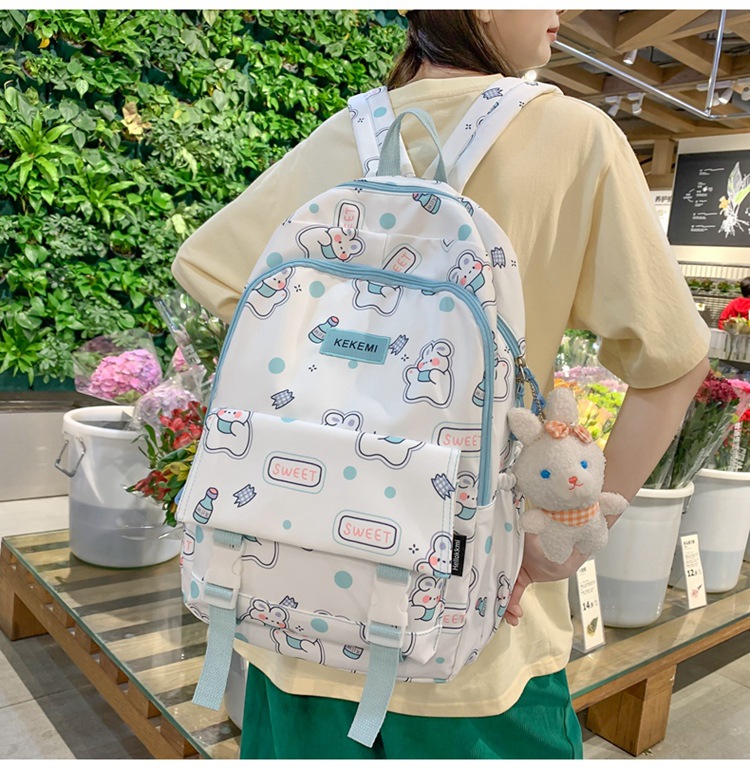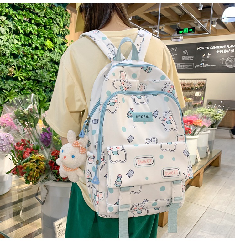 书包女可爱初中生卡通双肩包小清新印花初中生电脑背包