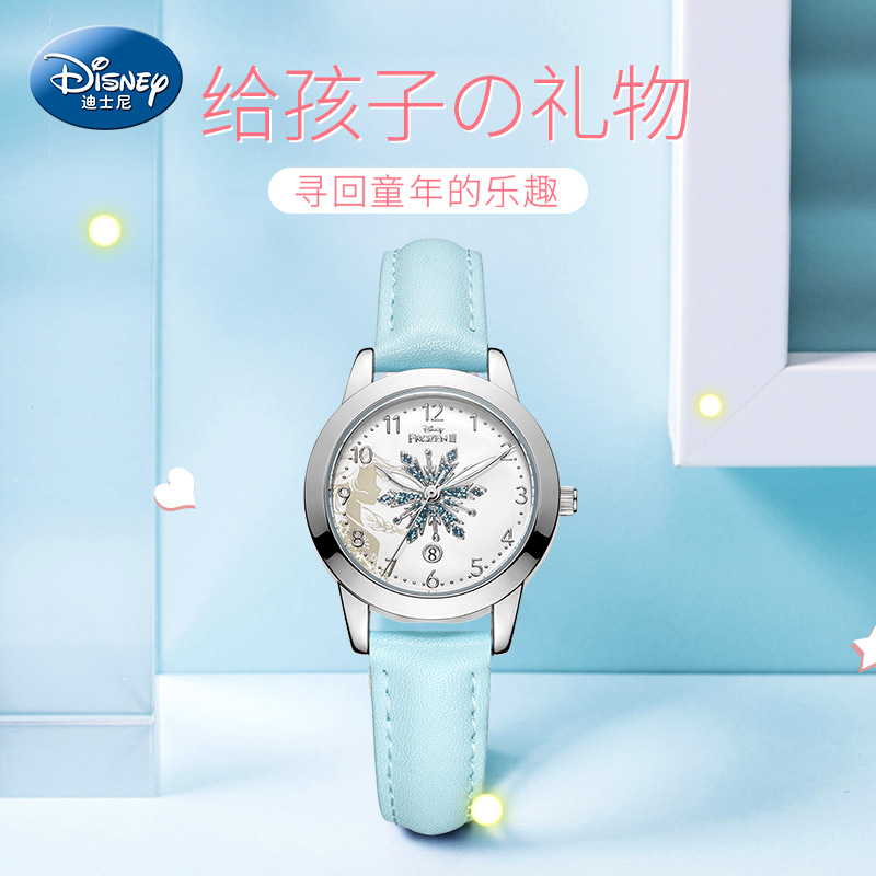 迪士尼女童手表指针式可爱冰雪奇缘2公主初中生防水小学生手表女