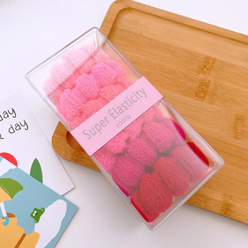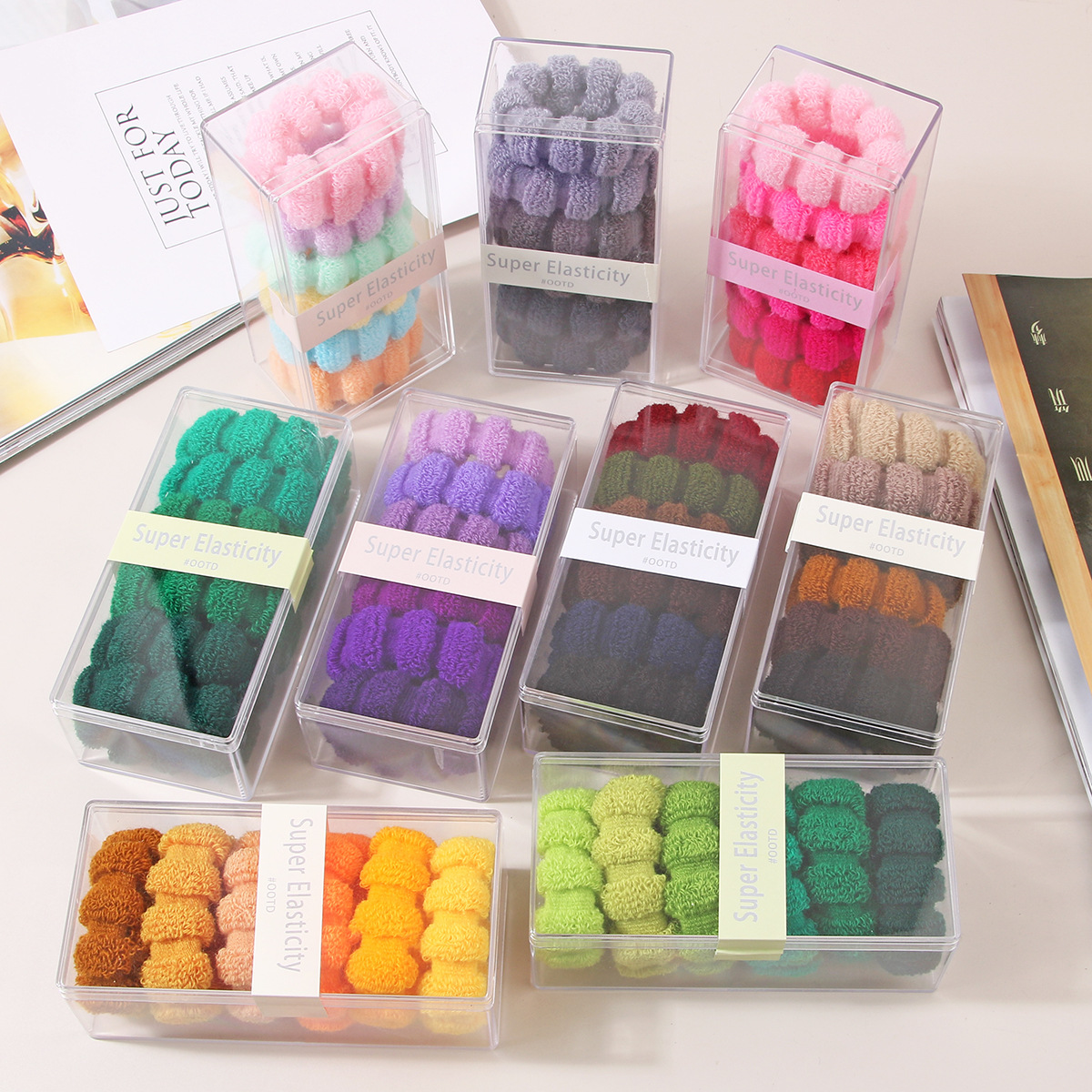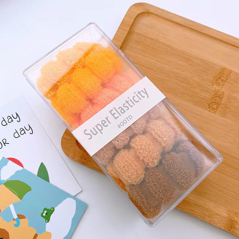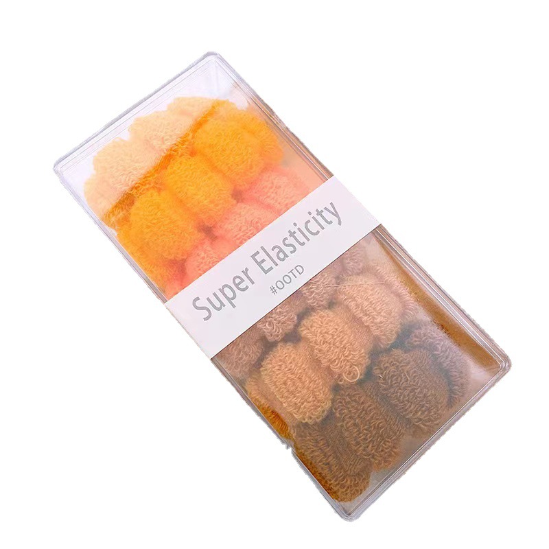 韩版6个盒装高弹力彩色发圈渐变色甜美毛巾巾圈无缝头绳大号发饰