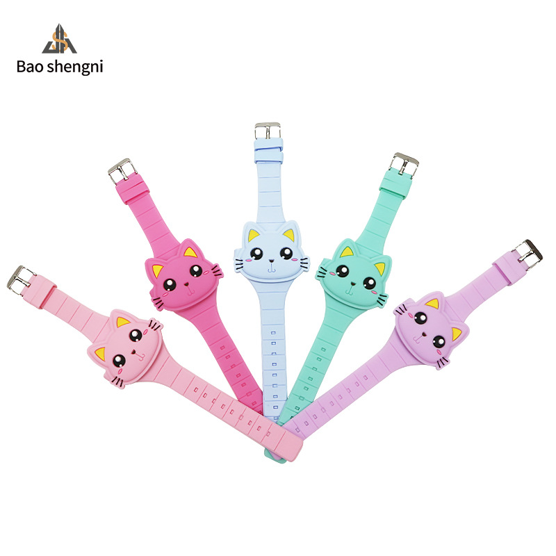 新款KT猫猫头咪卡通滴胶翻盖硅胶LED电子手表儿童硅胶卡通led手表