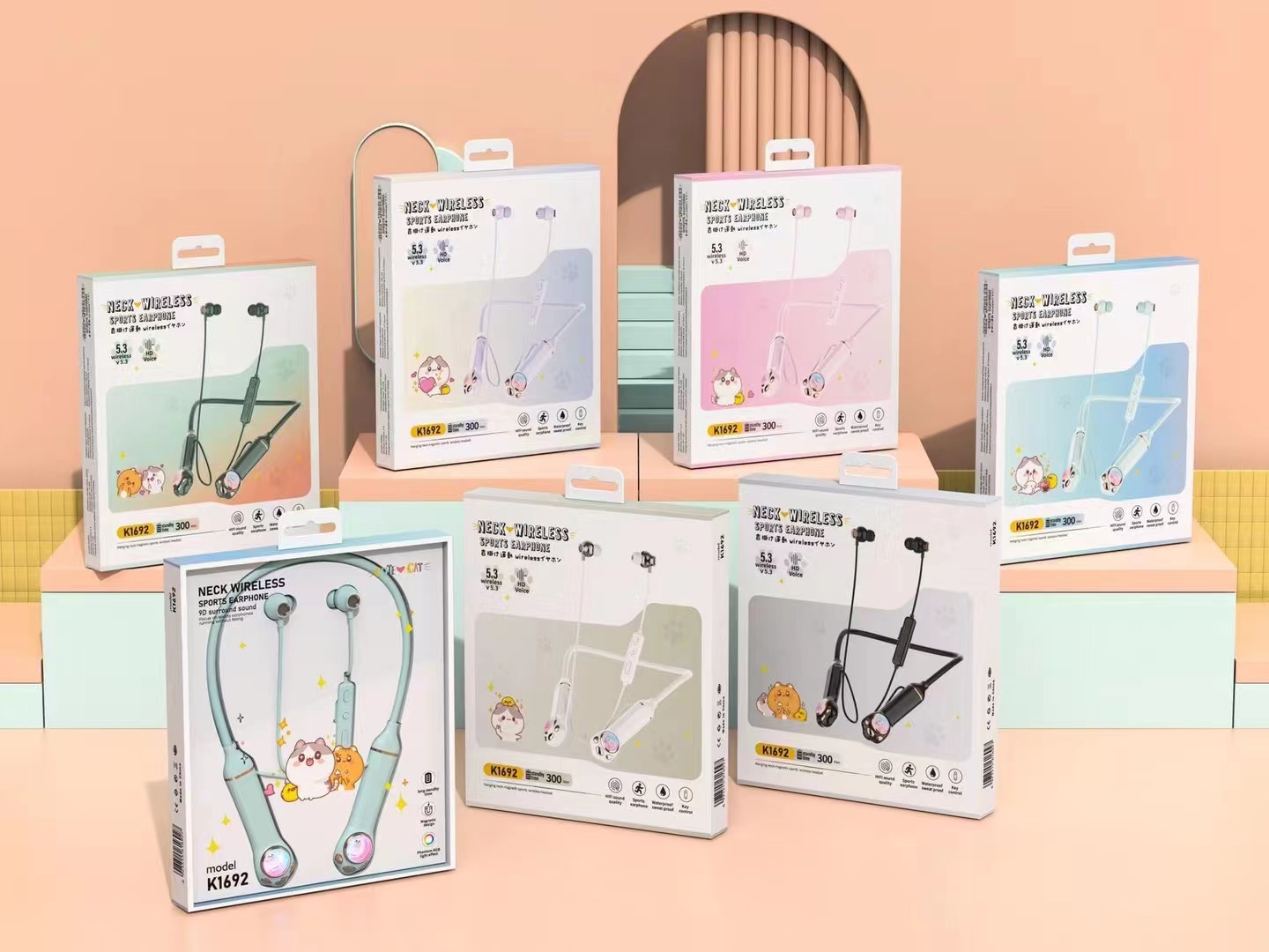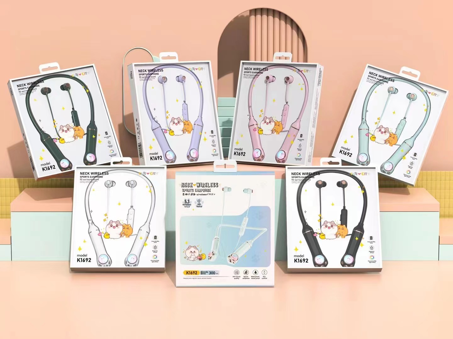 新款K1692蓝牙耳机无线颈挂式女生可爱运动高音质长续航跨境批发