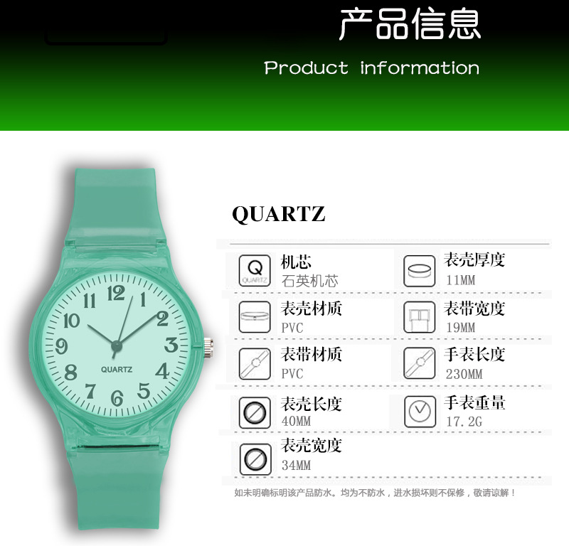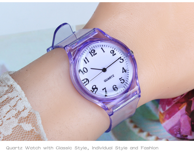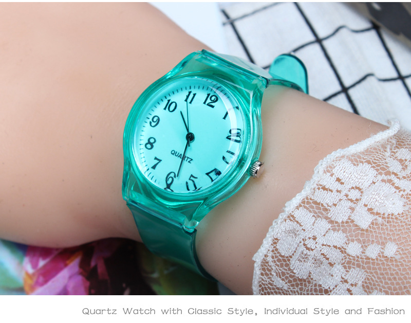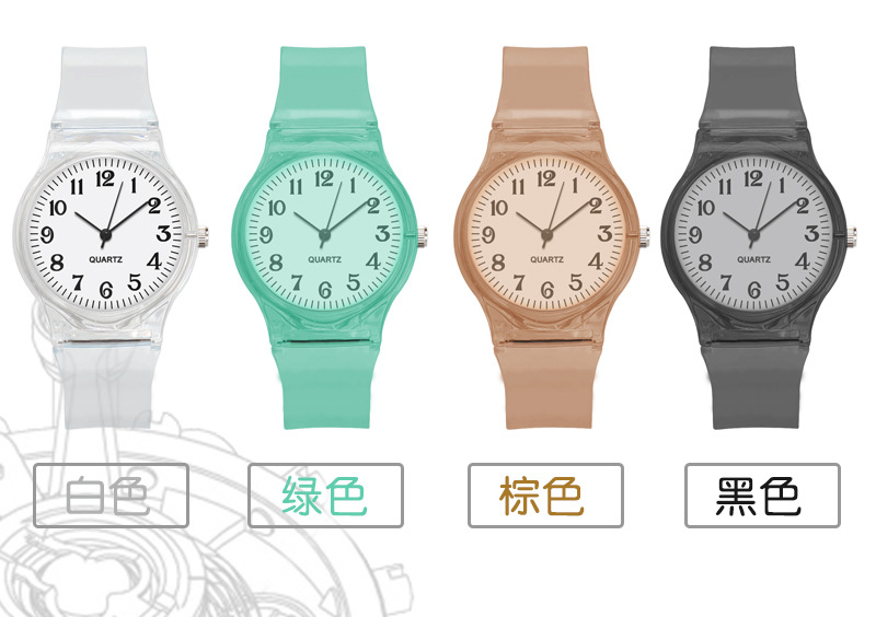 速卖通热销儿童手表 新款手表彩色透明表带表盘时尚潮流手表