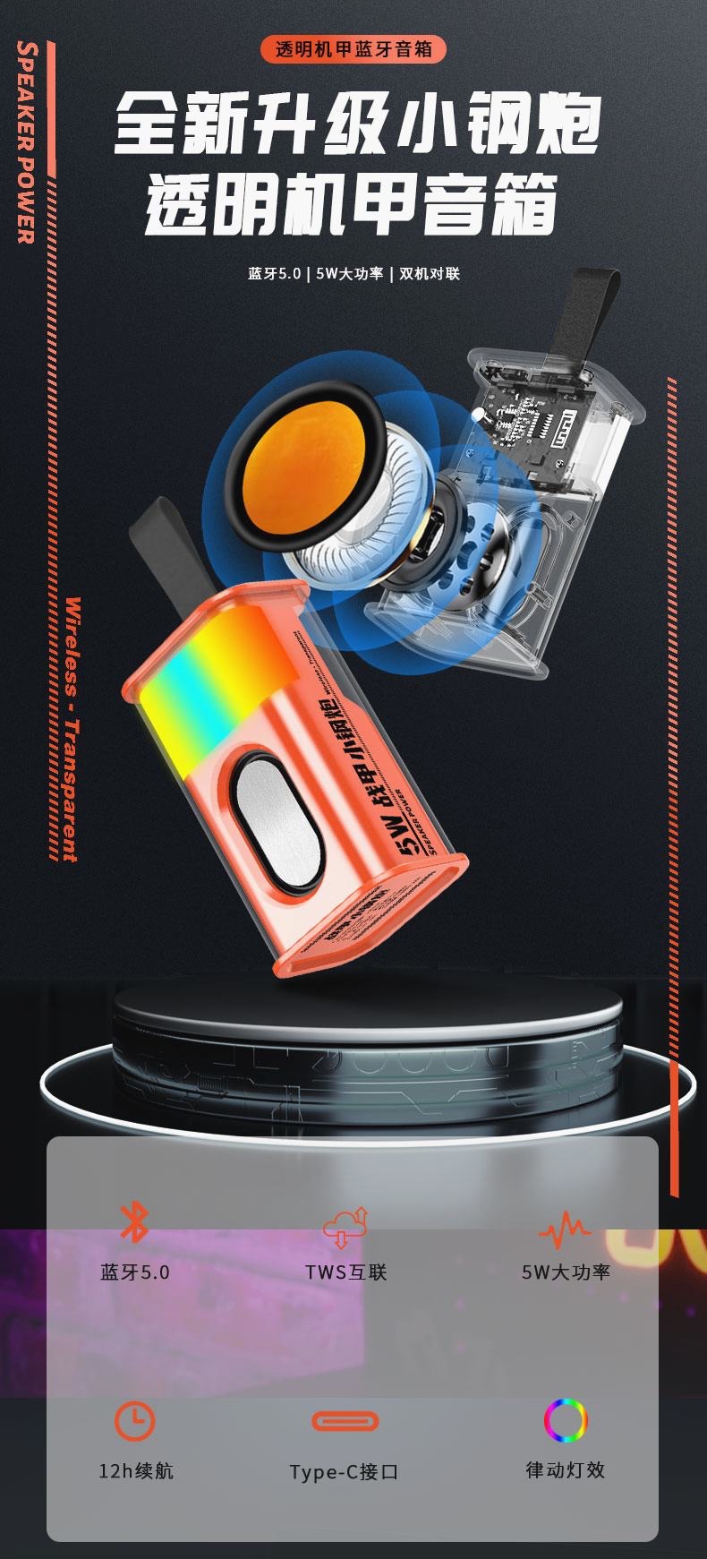 A36透明机甲蓝牙音响家用低音炮小钢炮迷你户外便携式小音箱礼物