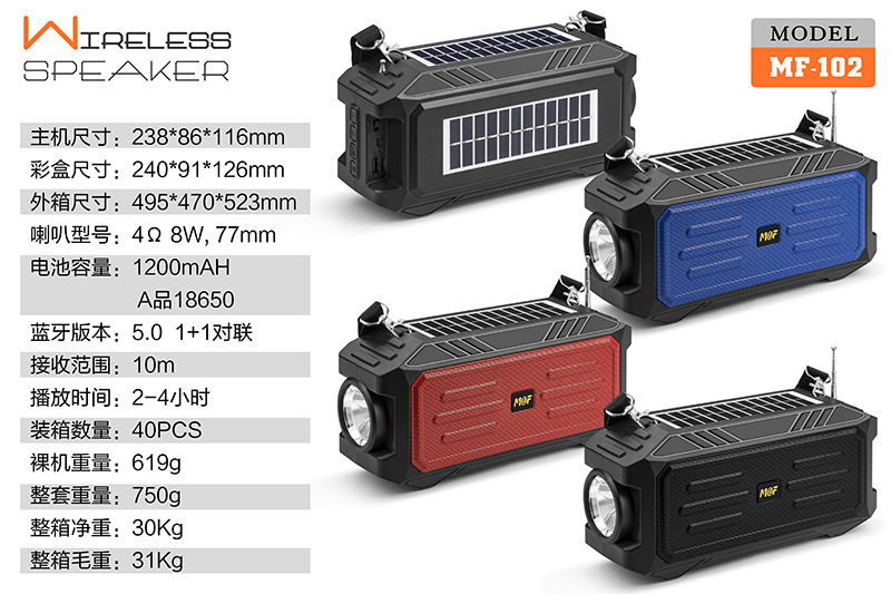 MF-102无线蓝牙音箱低音炮户外照明大音量便携式便携迷你家用音响