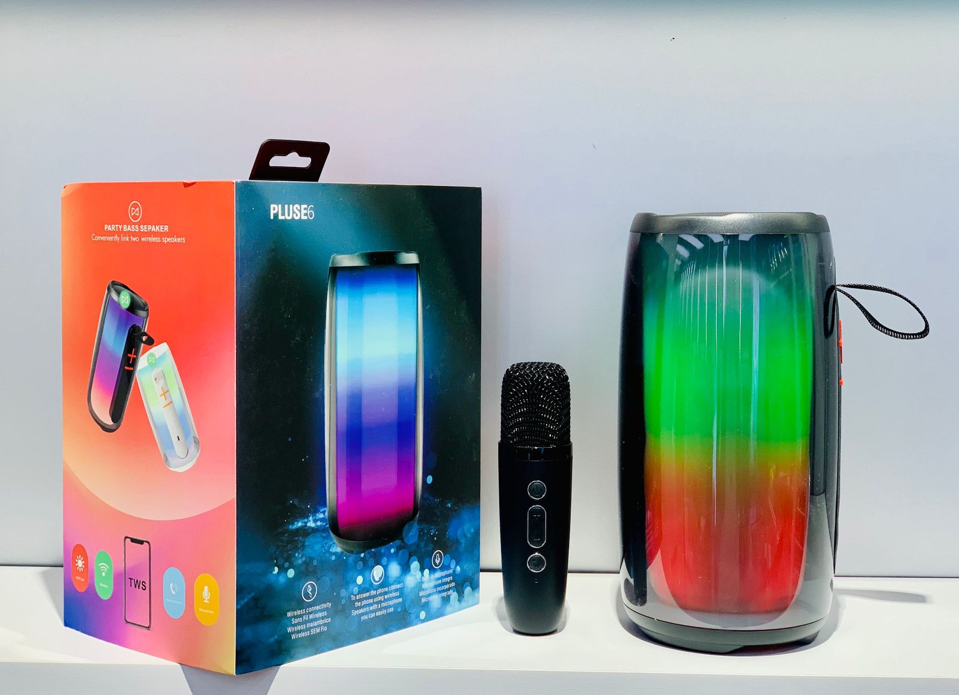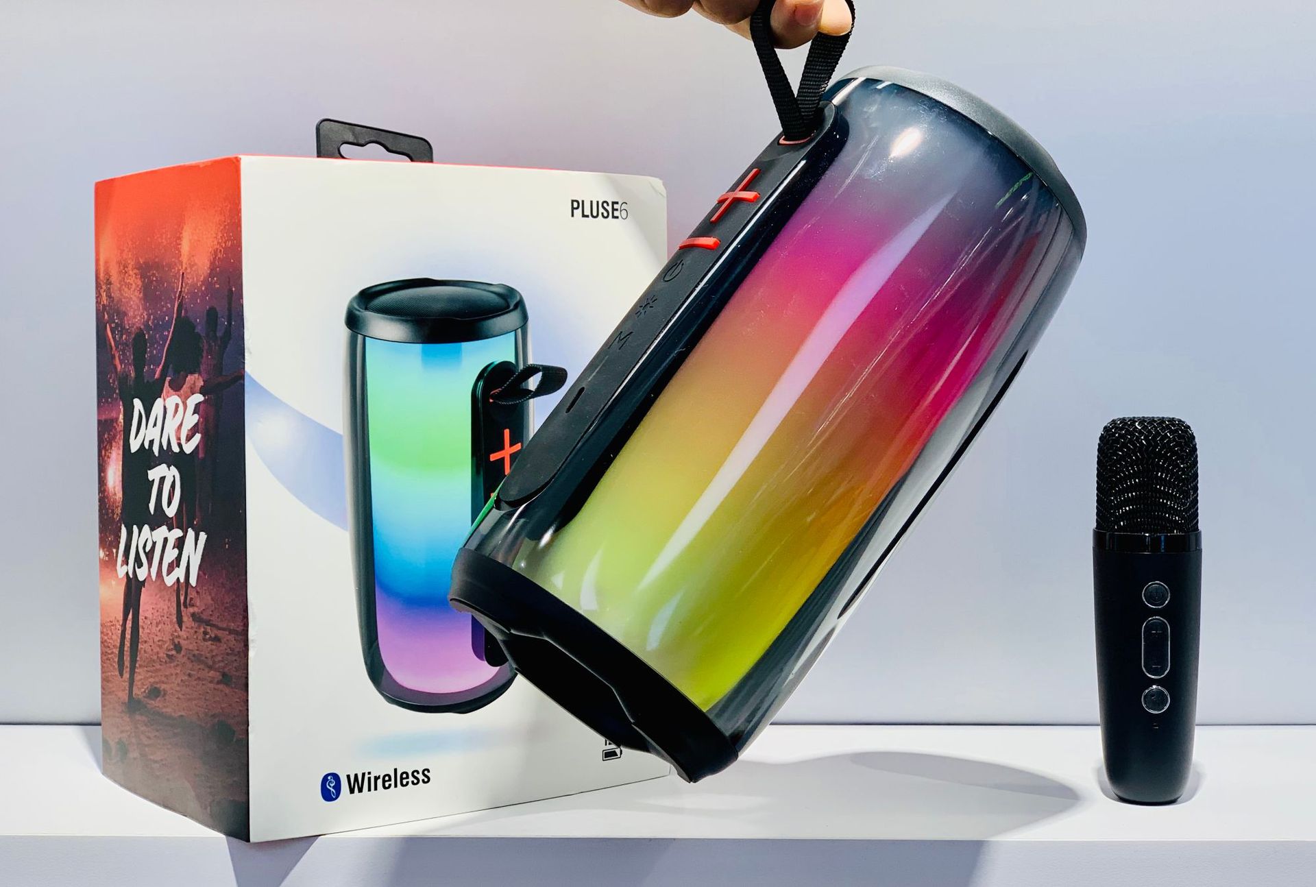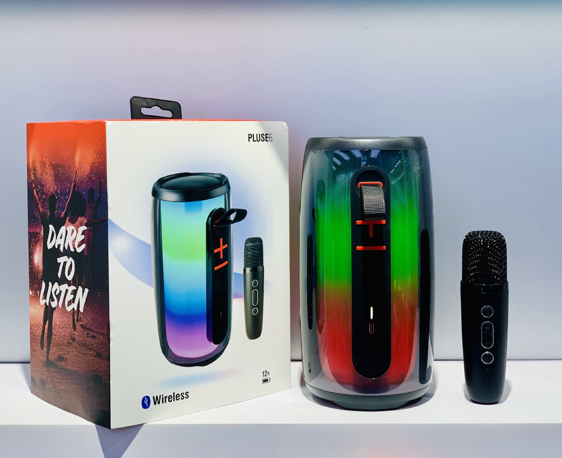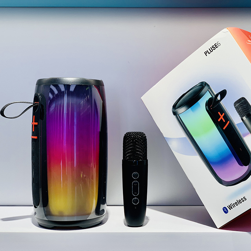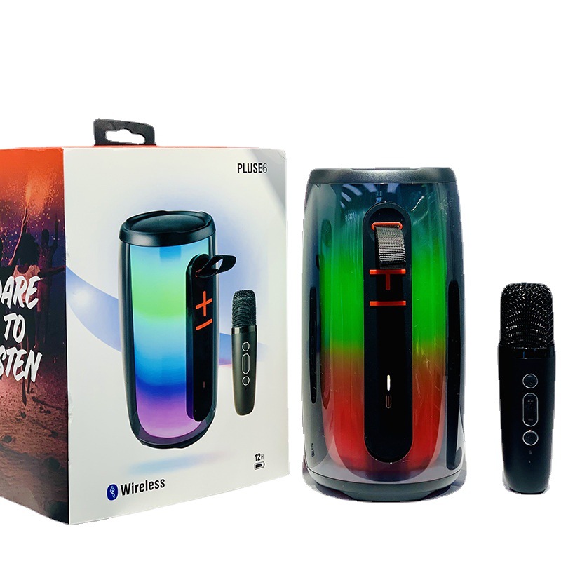 跨境PLUSE6蓝牙音响K歌一体家用户外高音质立体声低音炮氛围灯音