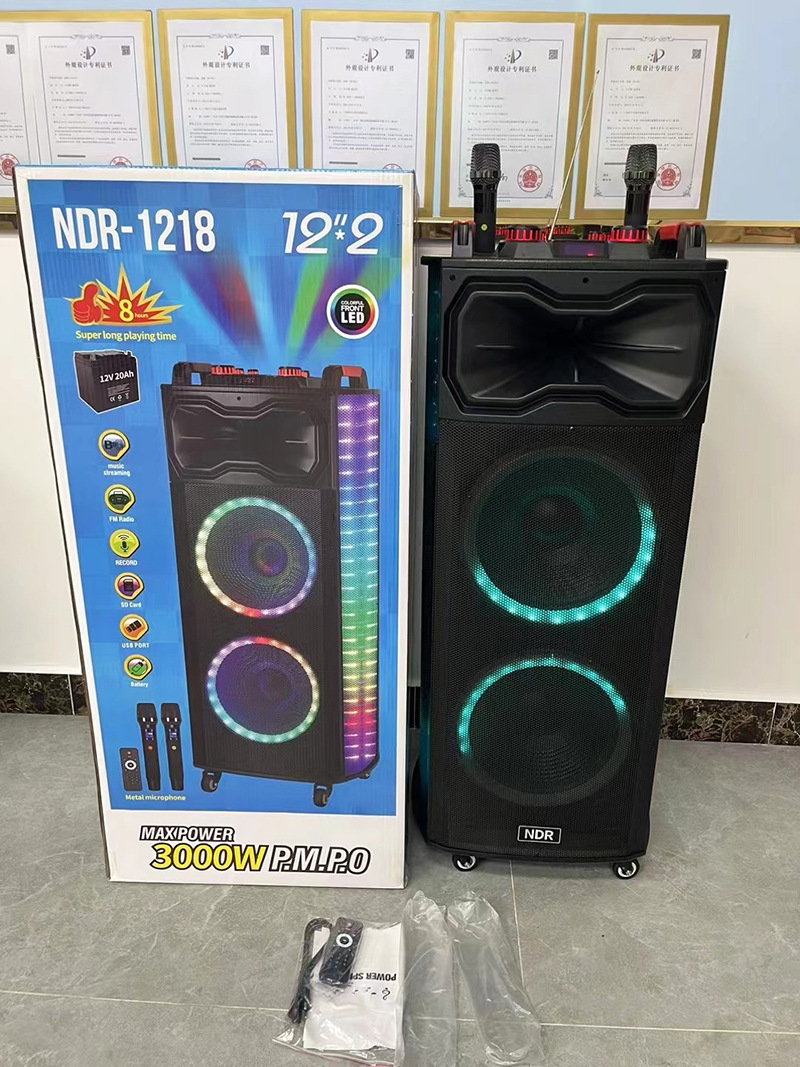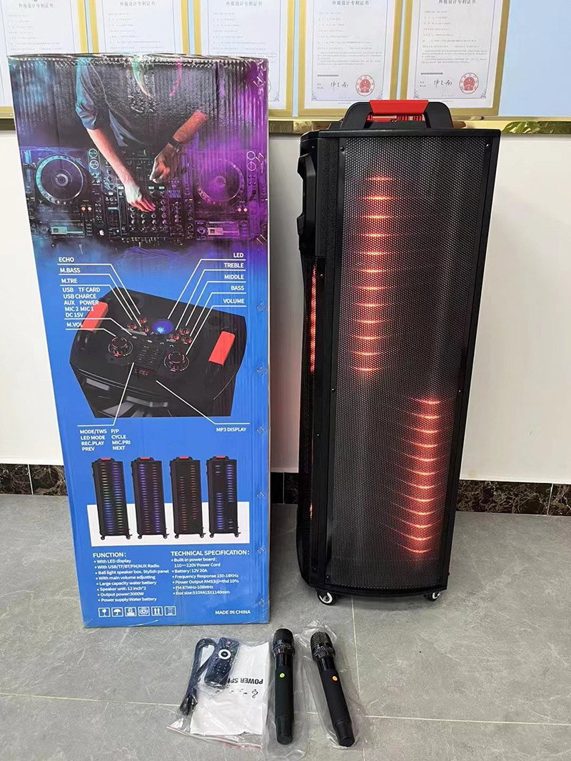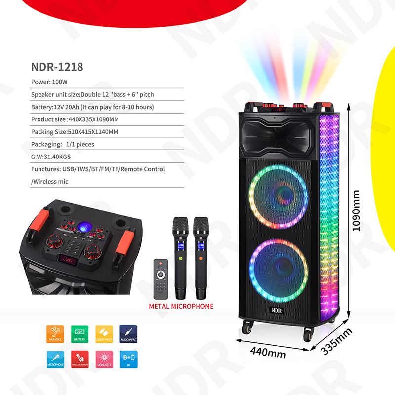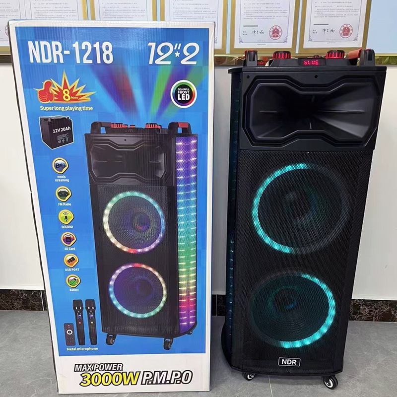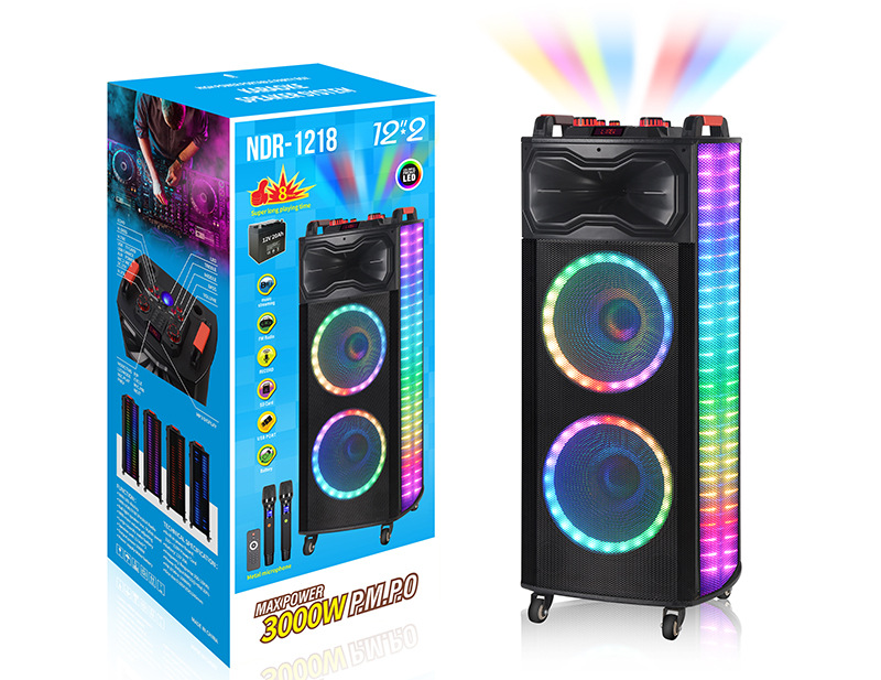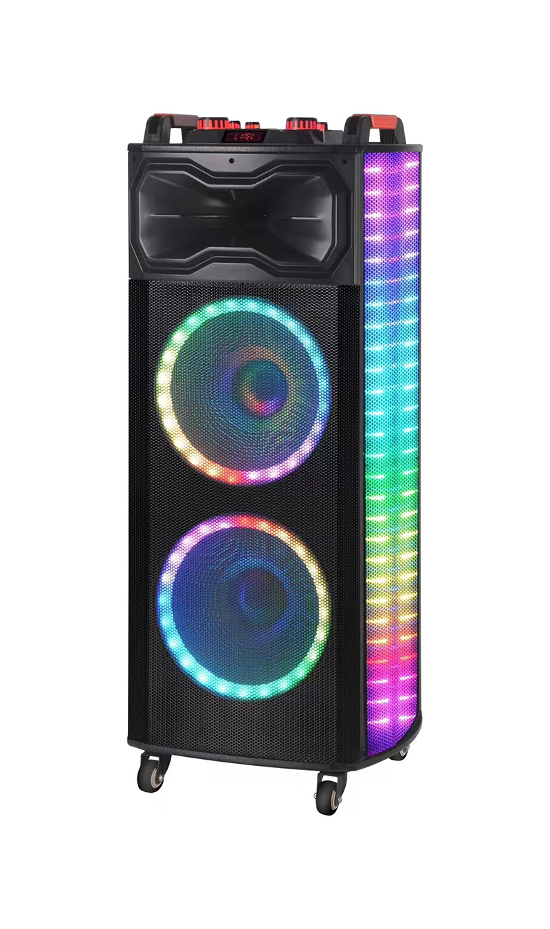 新款双12寸蓝牙音响户外家用K歌广场舞大功率超重低音炫酷灯音箱
