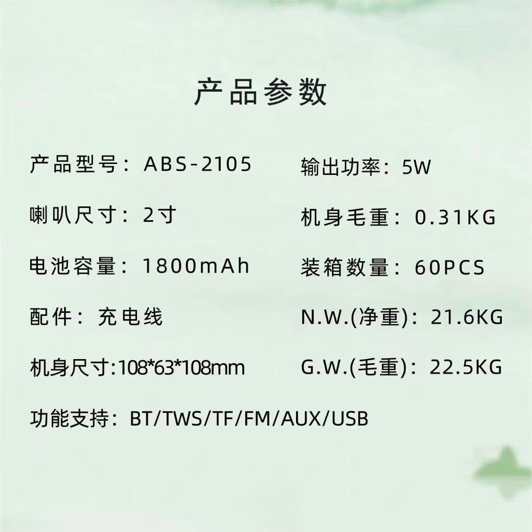 跨境ABS-2105无线家用蓝牙音箱低音炮户外迷你电脑便携小钢炮音响