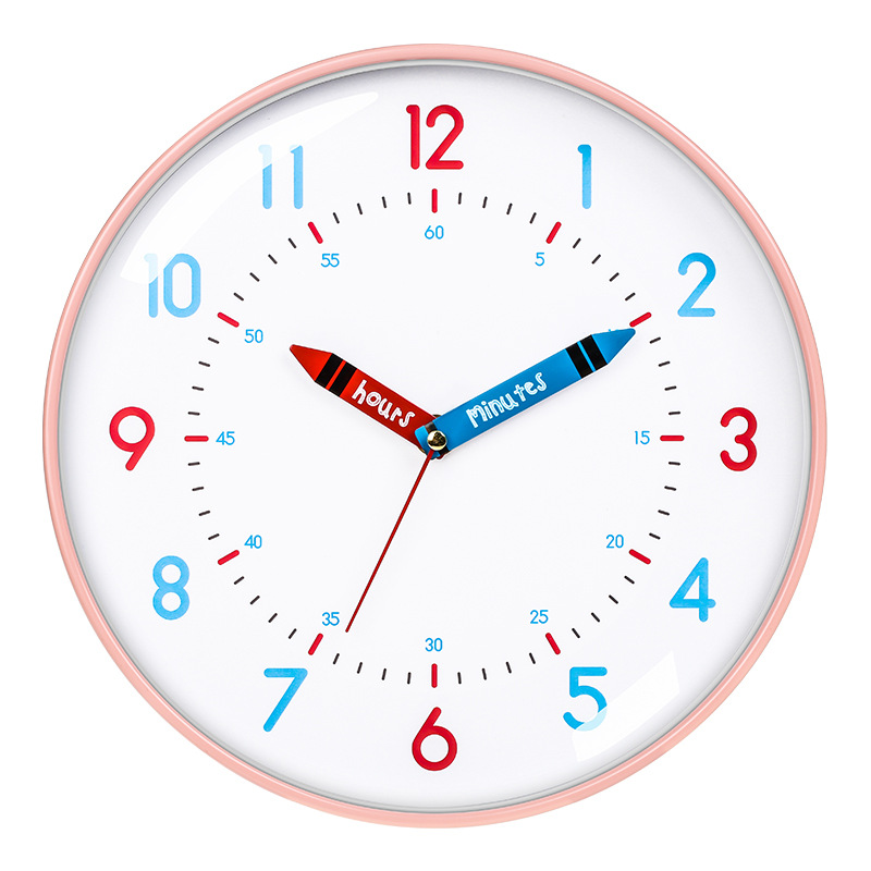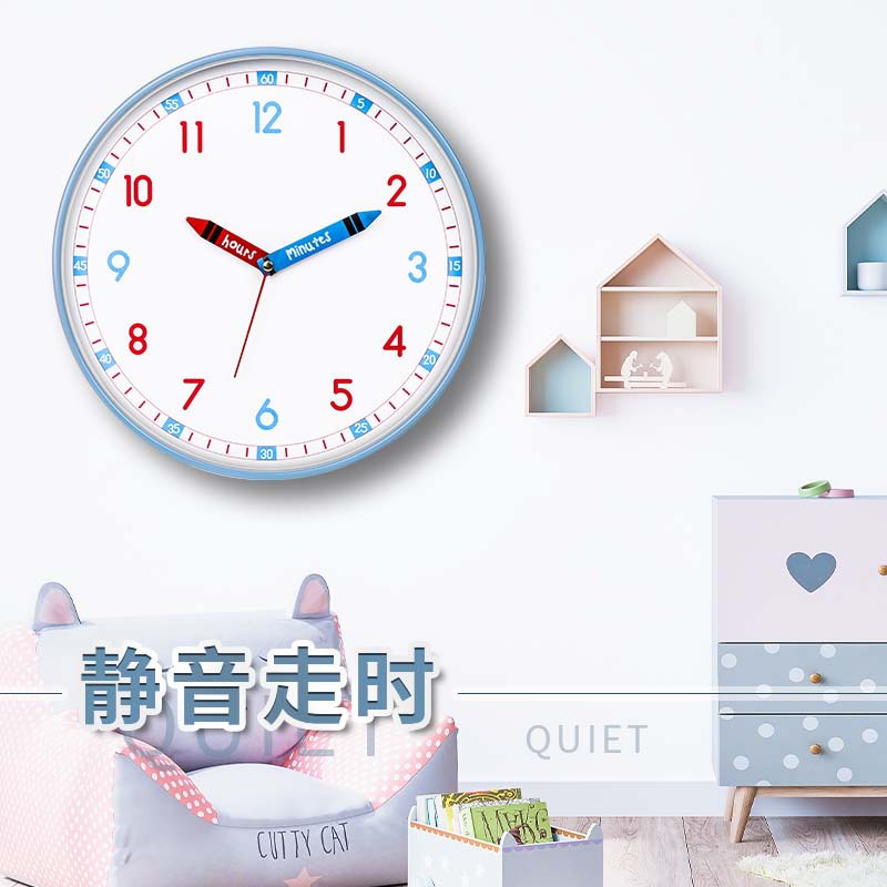 儿童房早教创意时钟免打孔清新卡通静音钟表学生学习挂墙家用挂钟