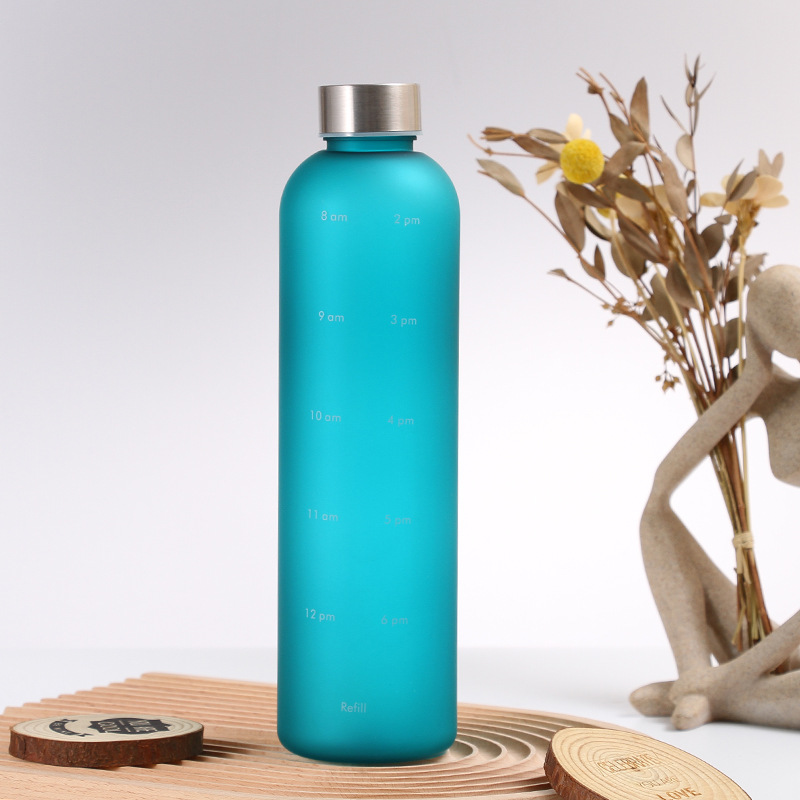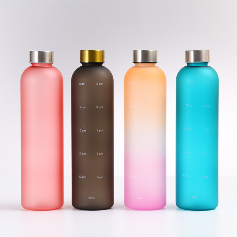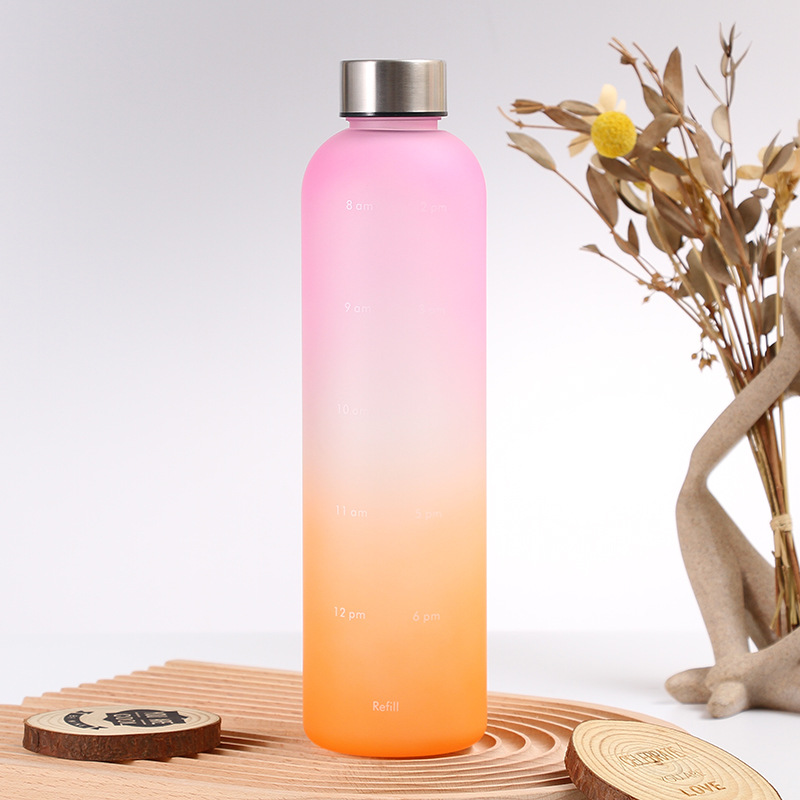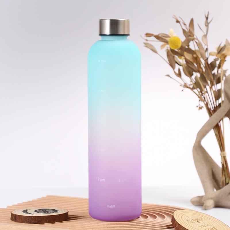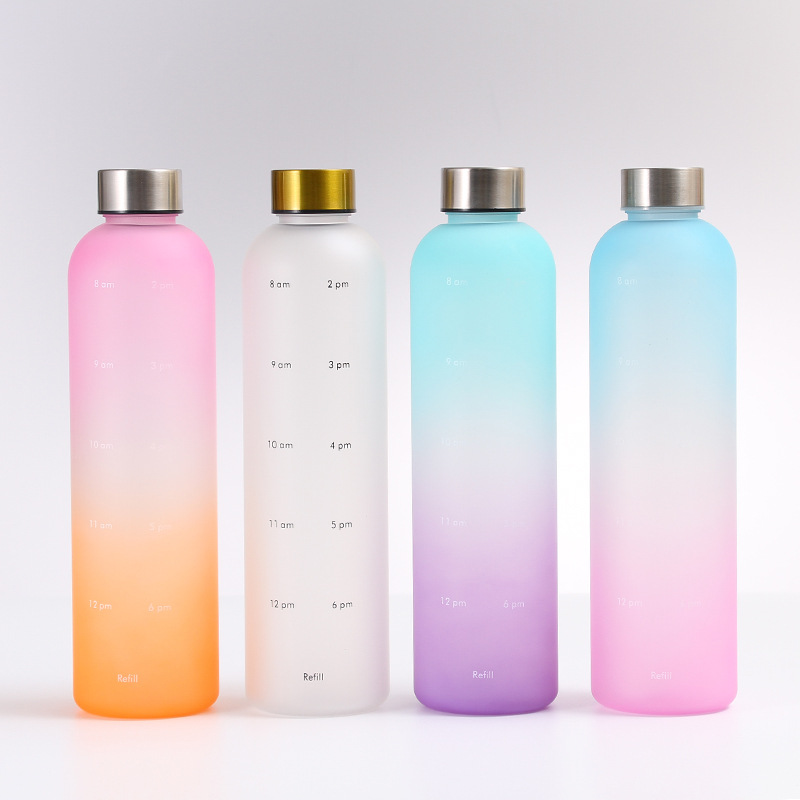 渐变色简约水杯塑料运动水壶带刻度便携学生韩版防摔创意杯子男女