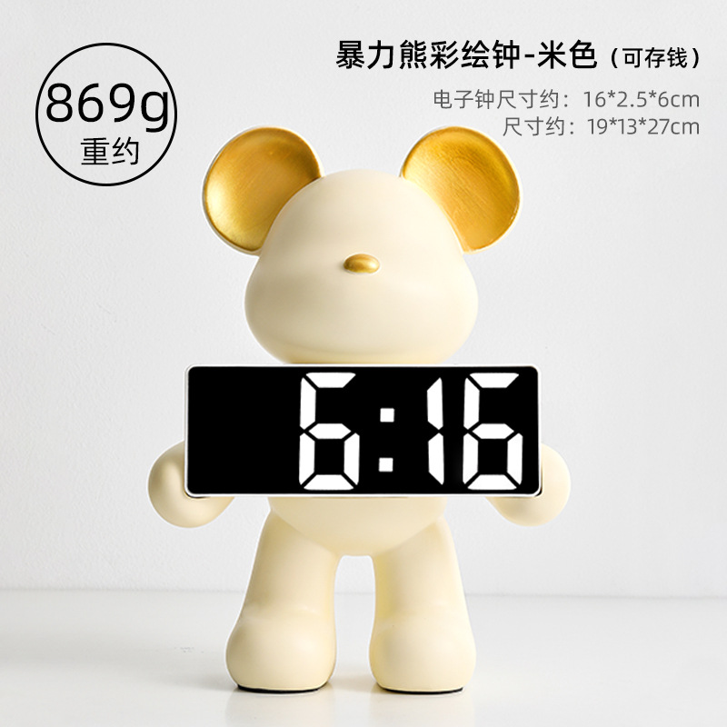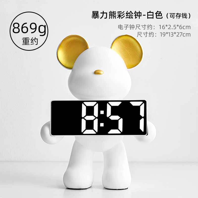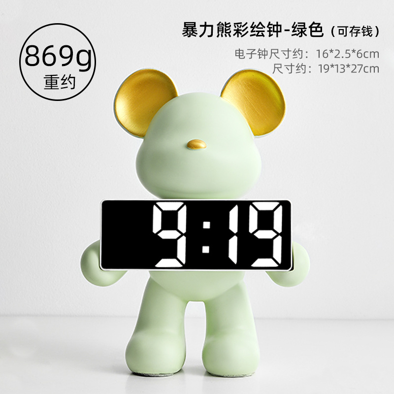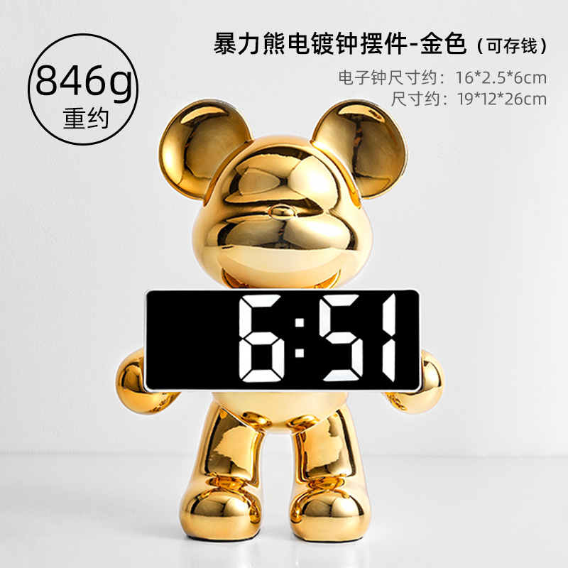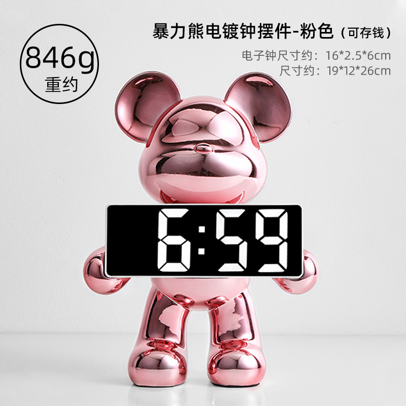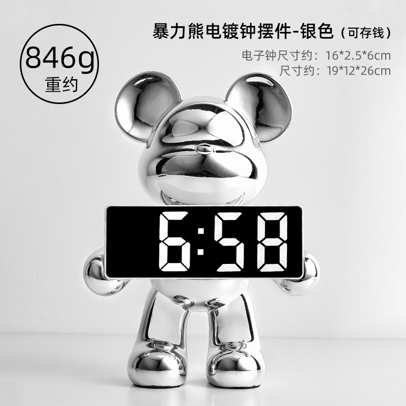 卡通暴力熊钟表客厅卧室闹钟摆件玄关家用台式数字钟表桌面装饰