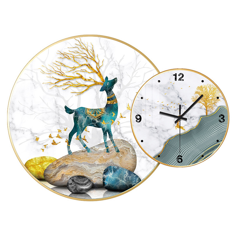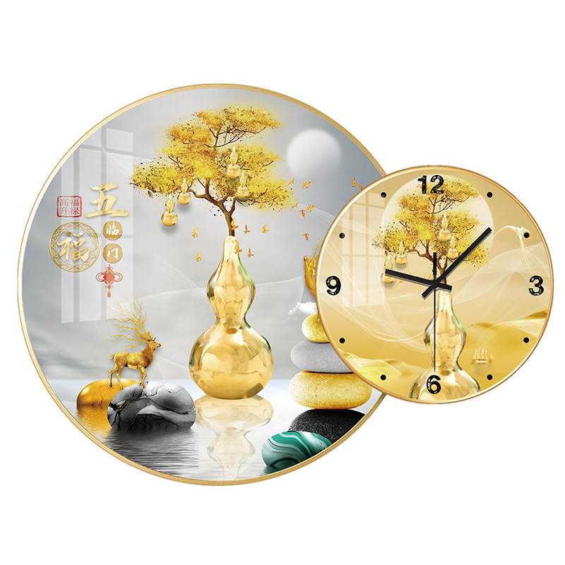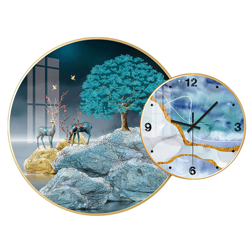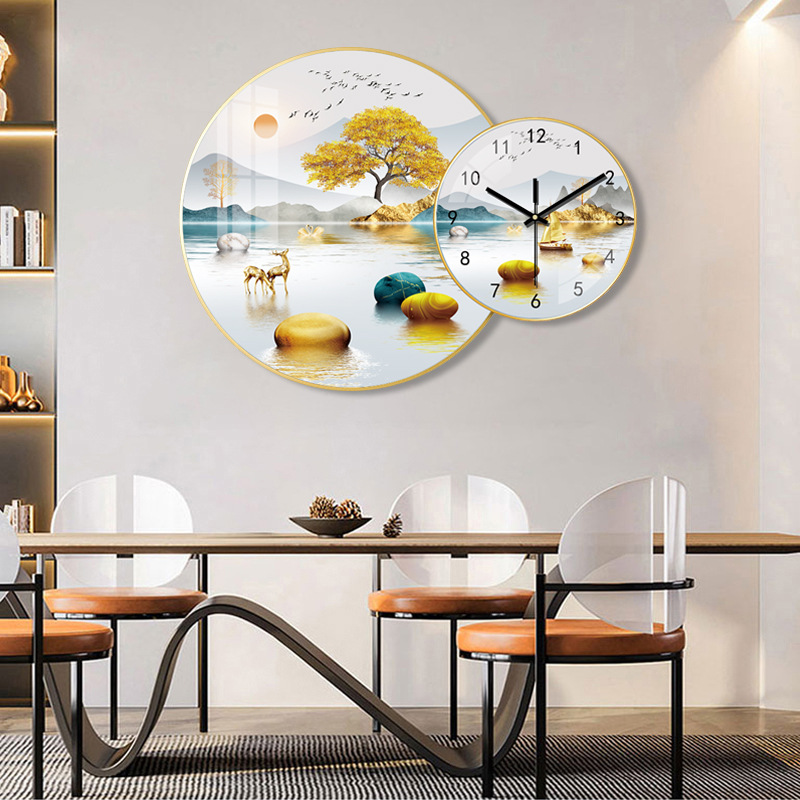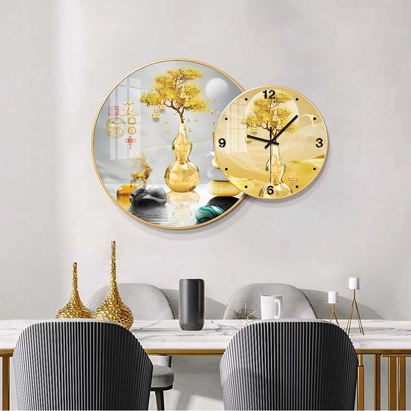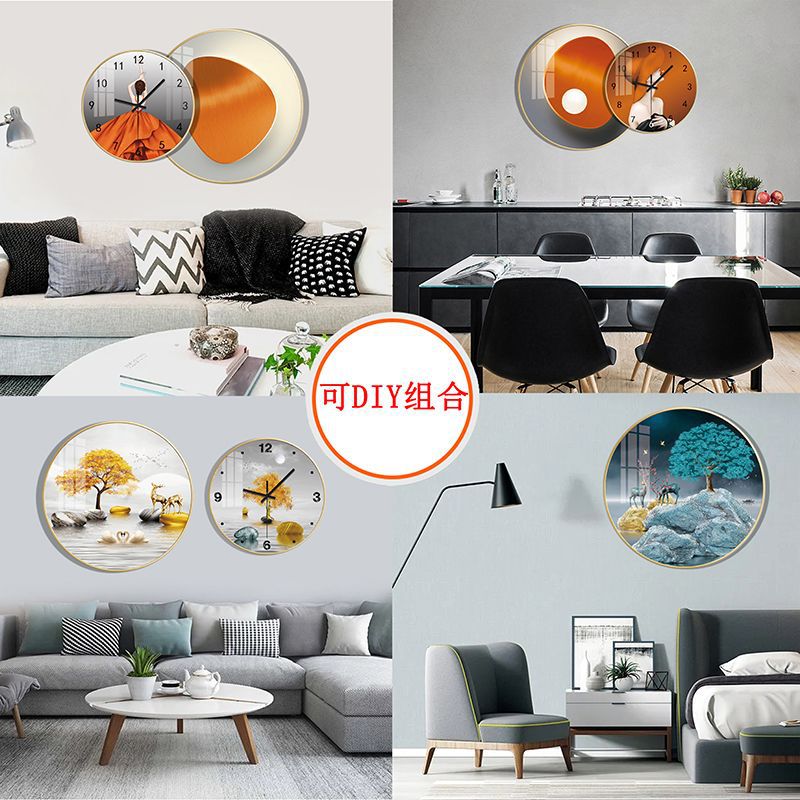 免打孔欧式晶瓷画组合挂钟可DIY 玄关客厅背景墙壁挂钟表静音时钟