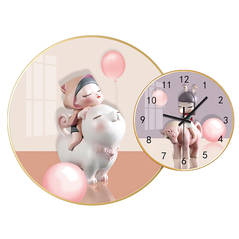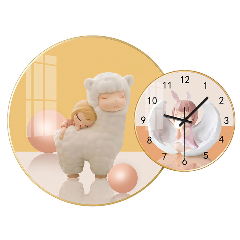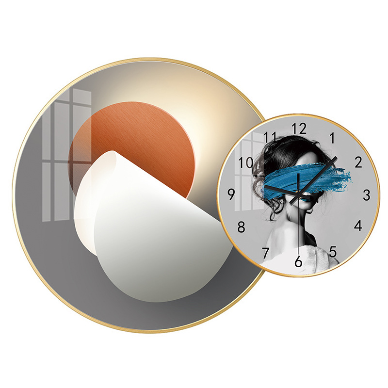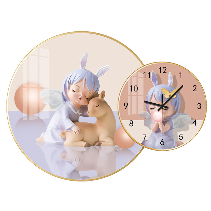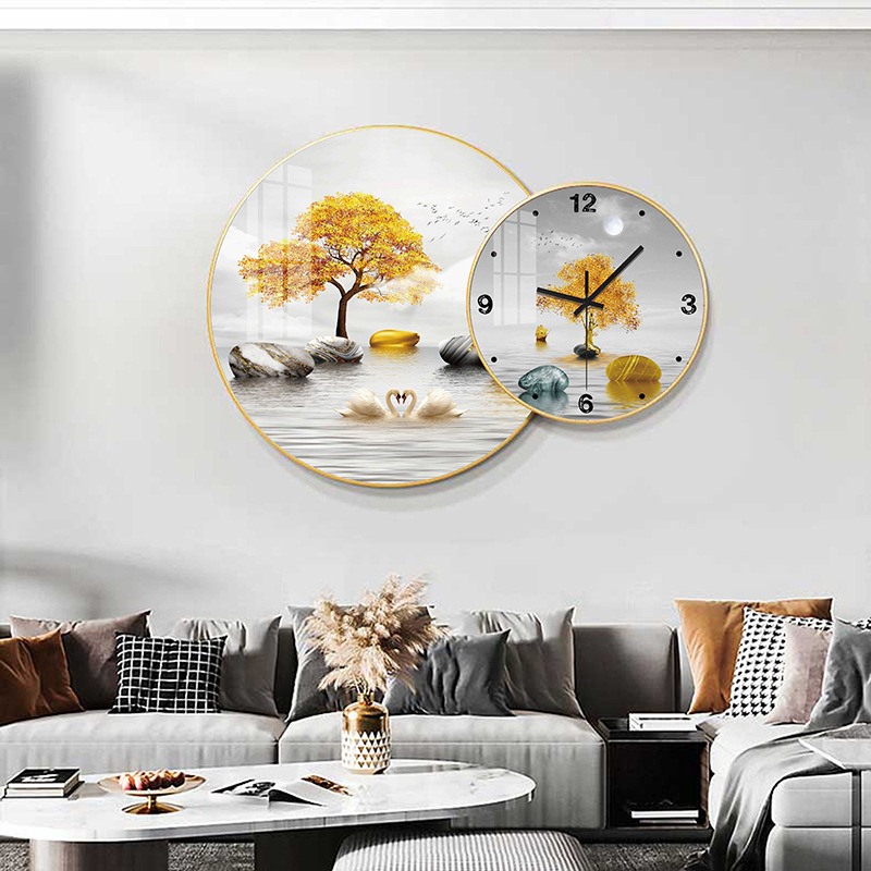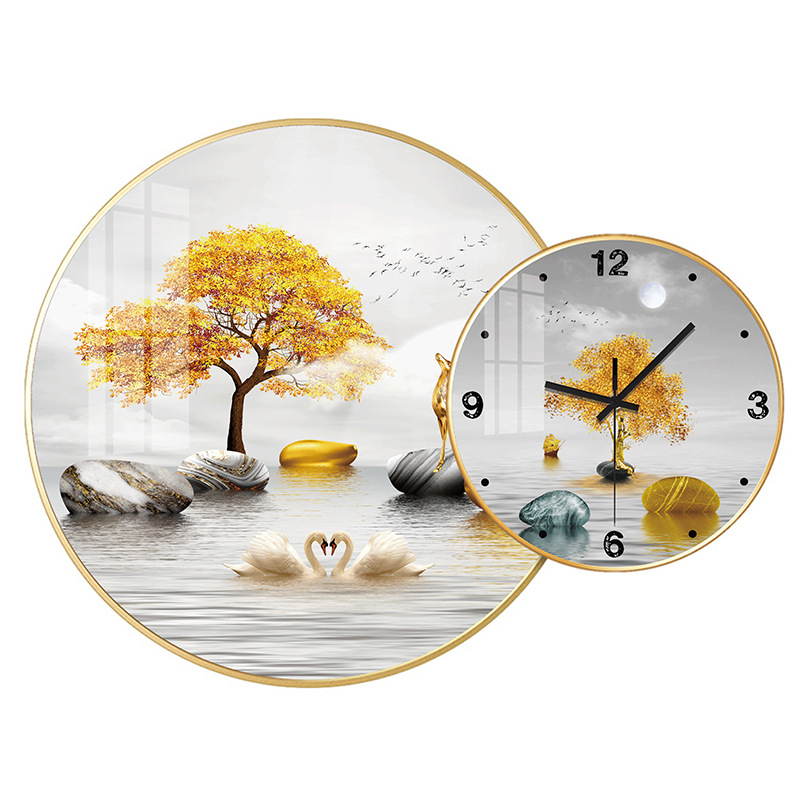 免打孔欧式晶瓷画组合挂钟可DIY 玄关客厅背景墙壁挂钟表静音时钟