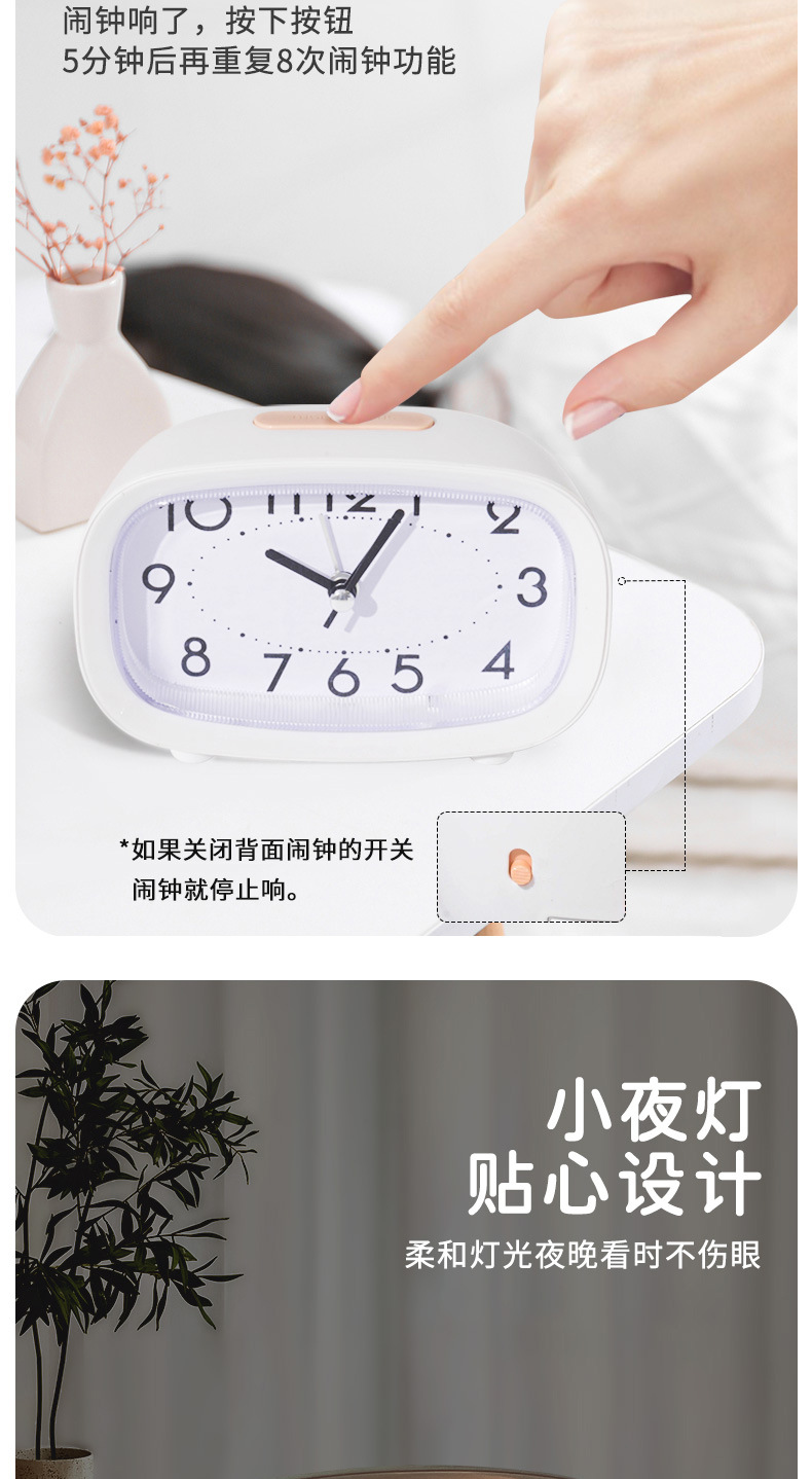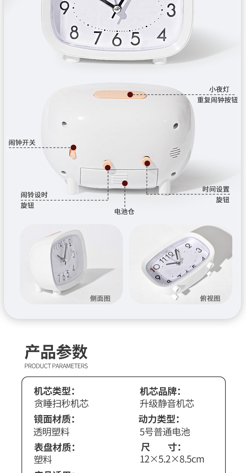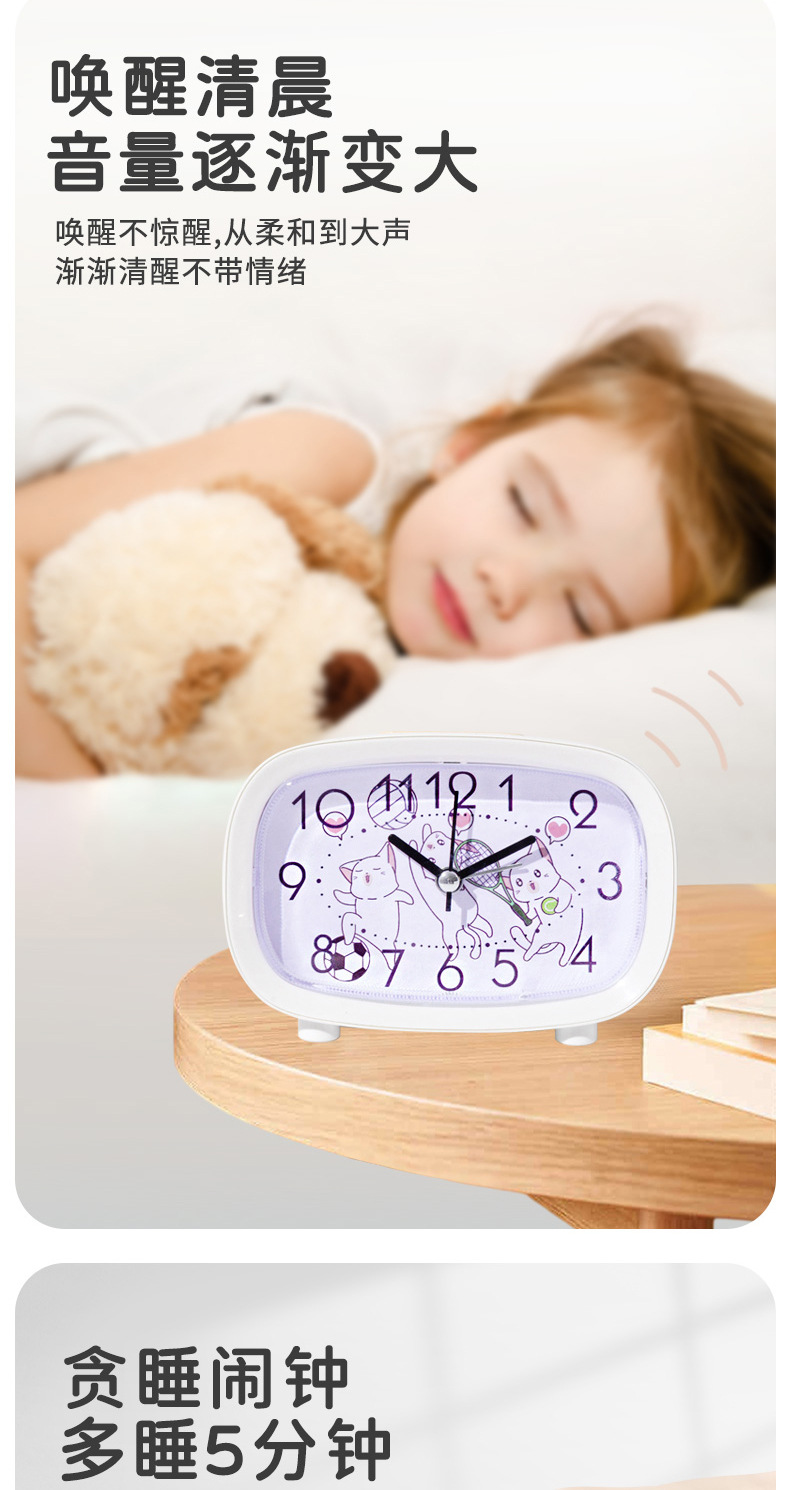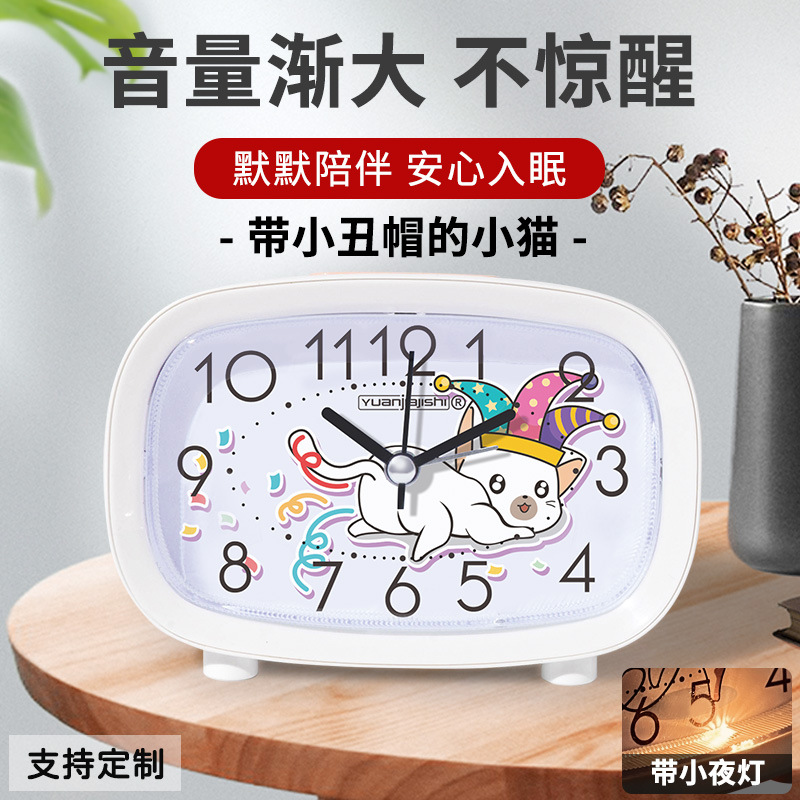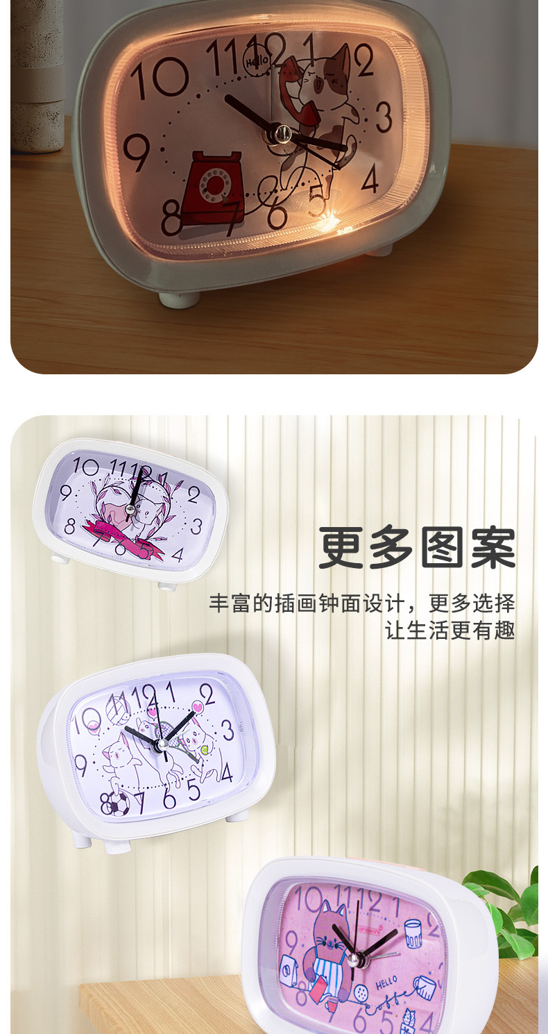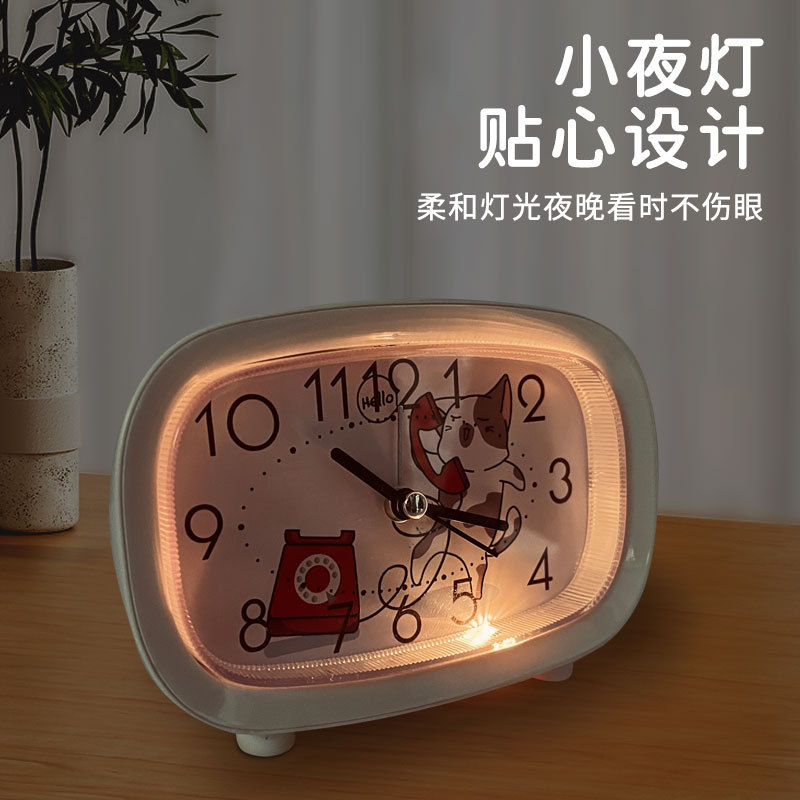 卡通闹钟学生专用简约静音可爱儿童台钟床头家用夜光懒人叫醒铃