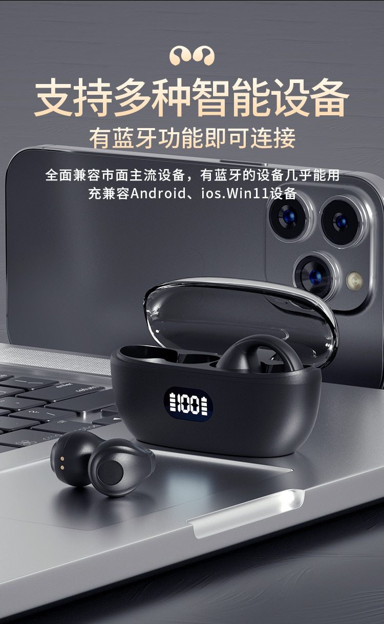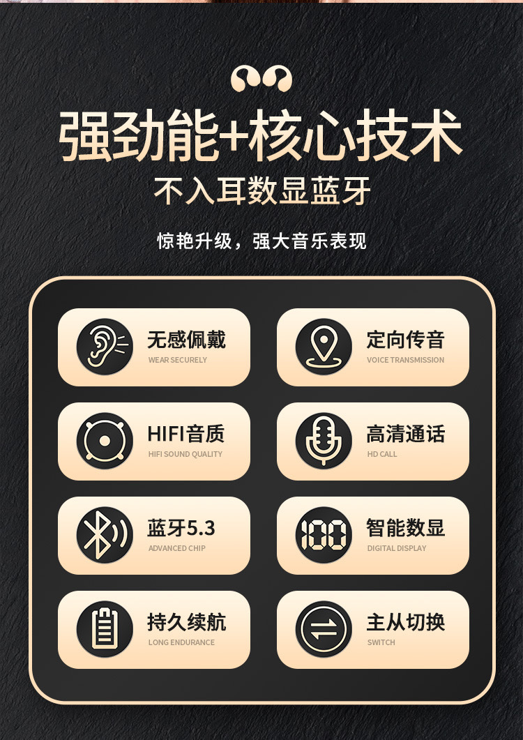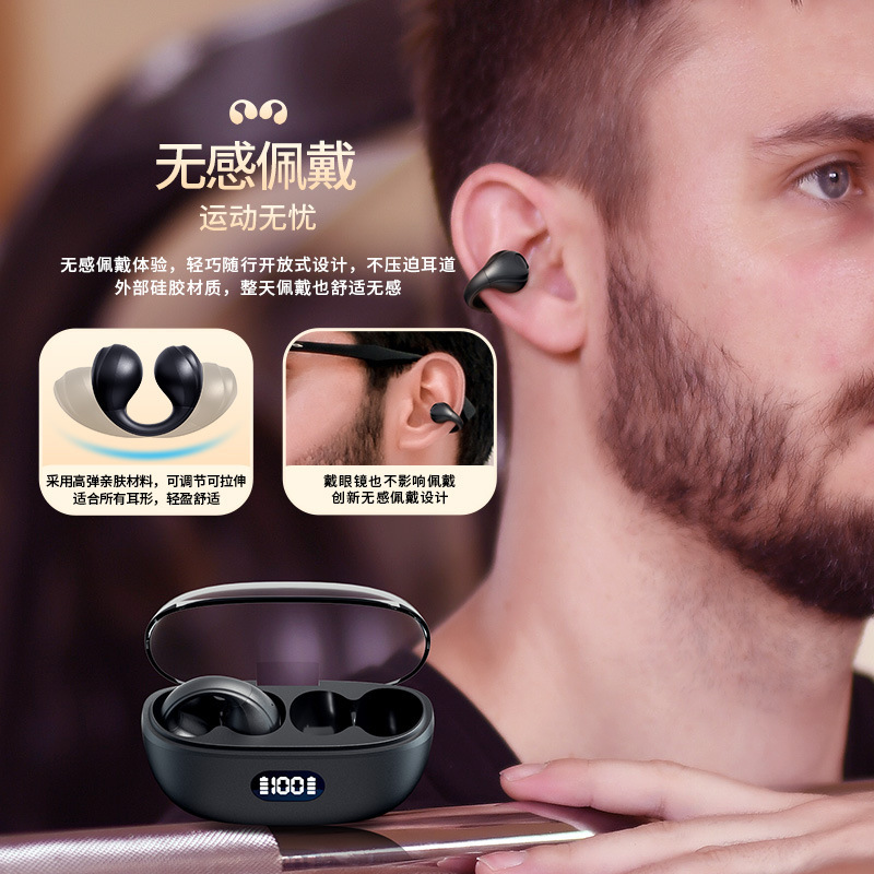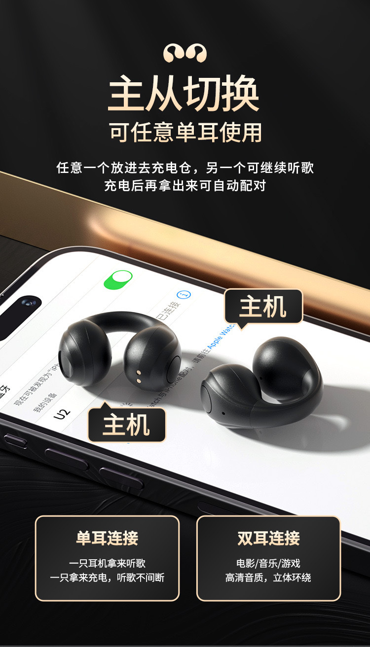 新款U2长续航高音质无线蓝牙耳机黑科技运动降噪智能骨传导夹耳式