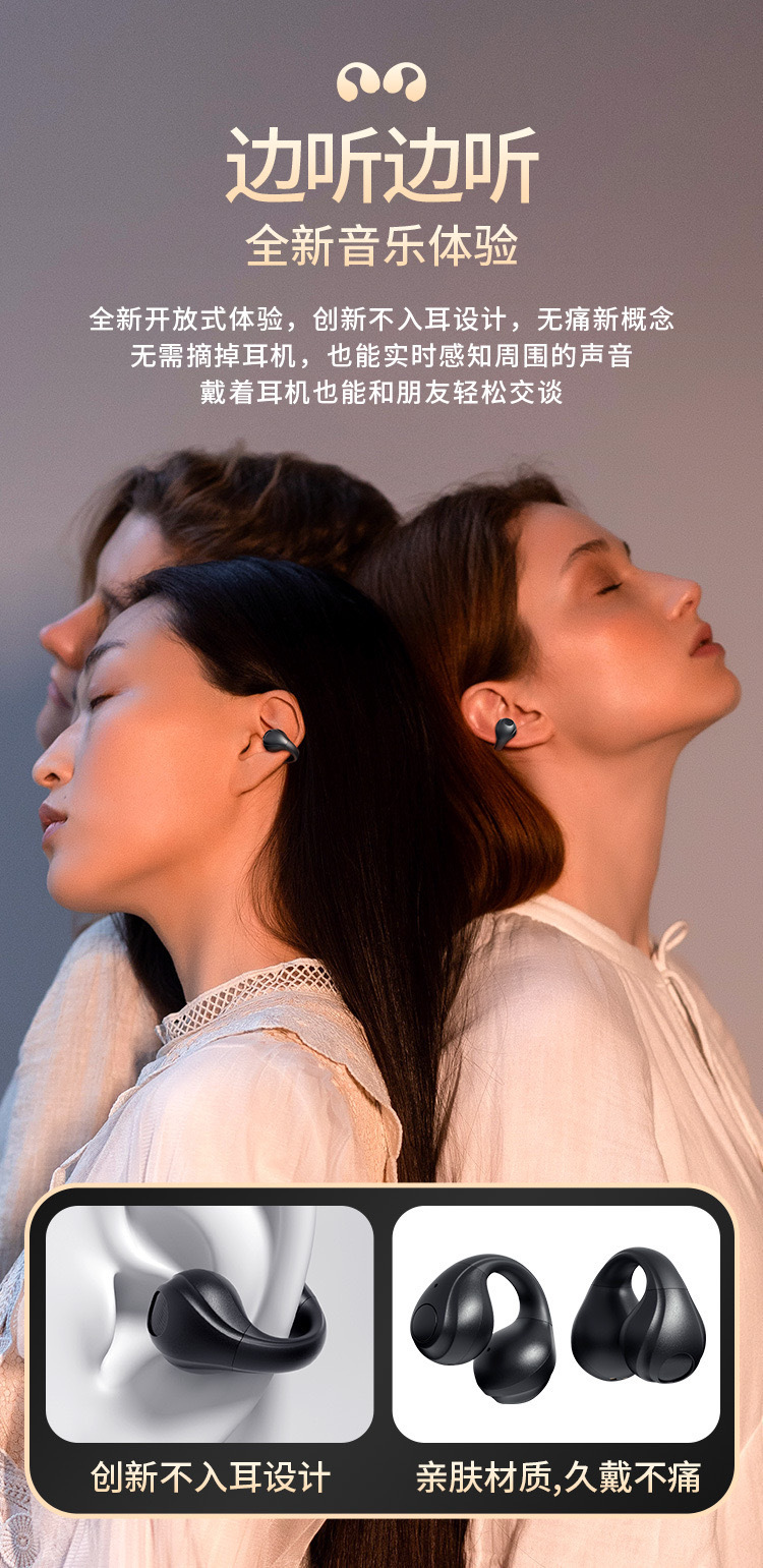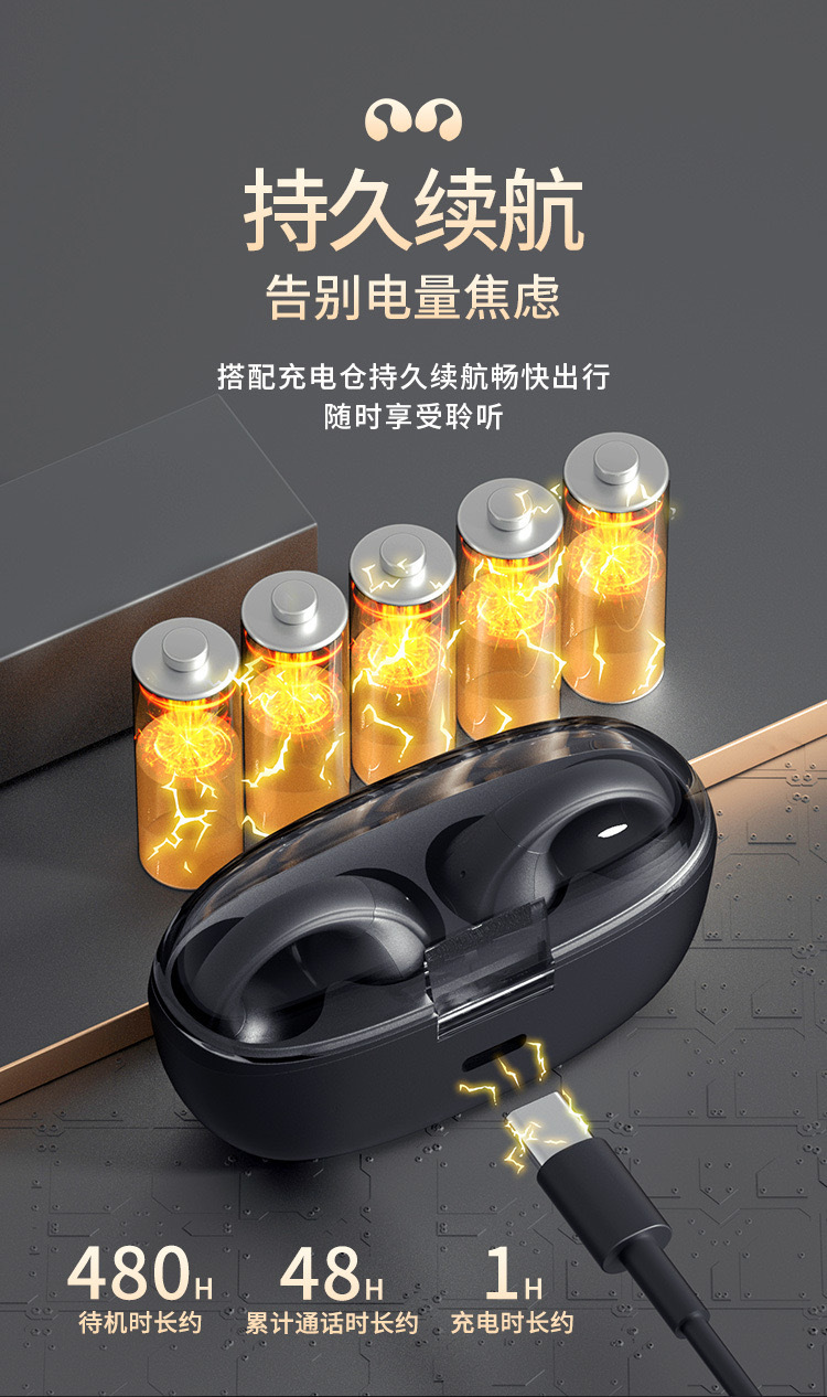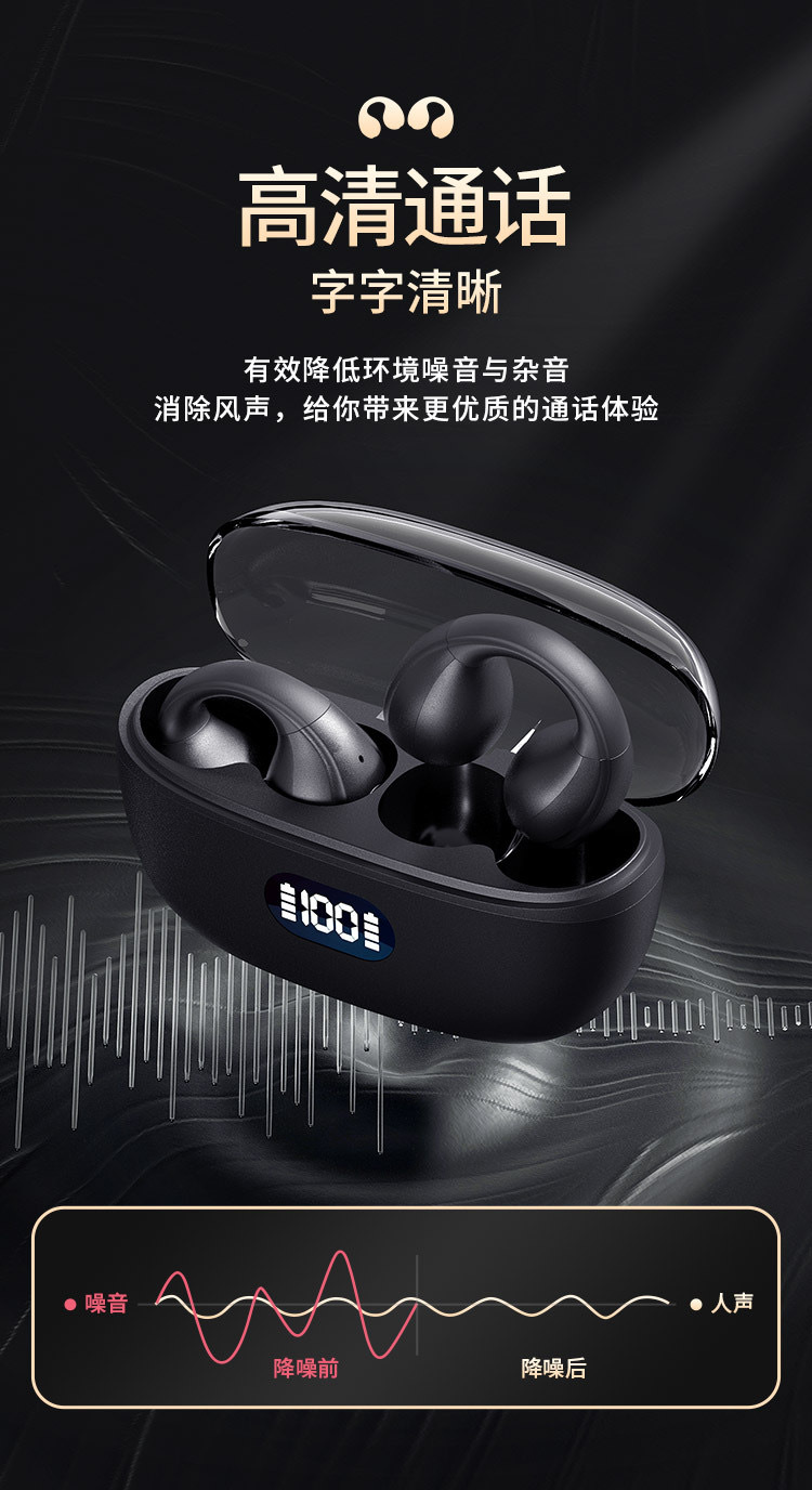 新款U2长续航高音质无线蓝牙耳机黑科技运动降噪智能骨传导夹耳式