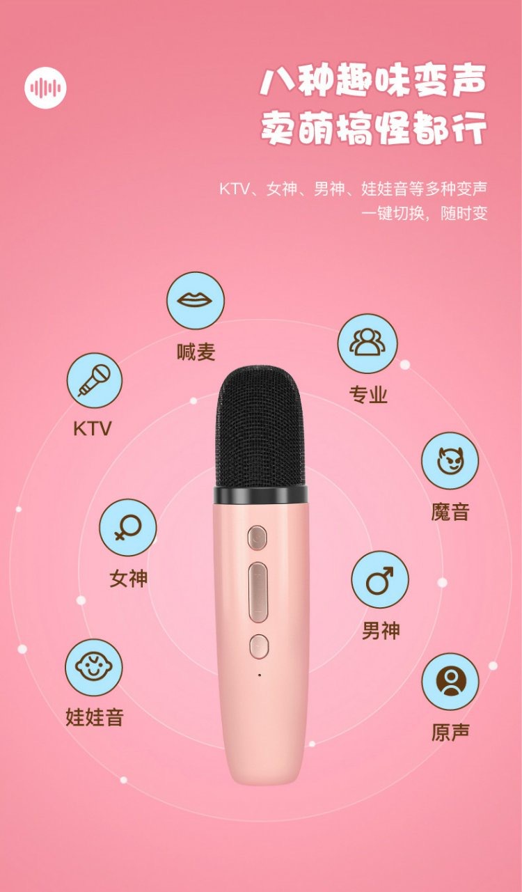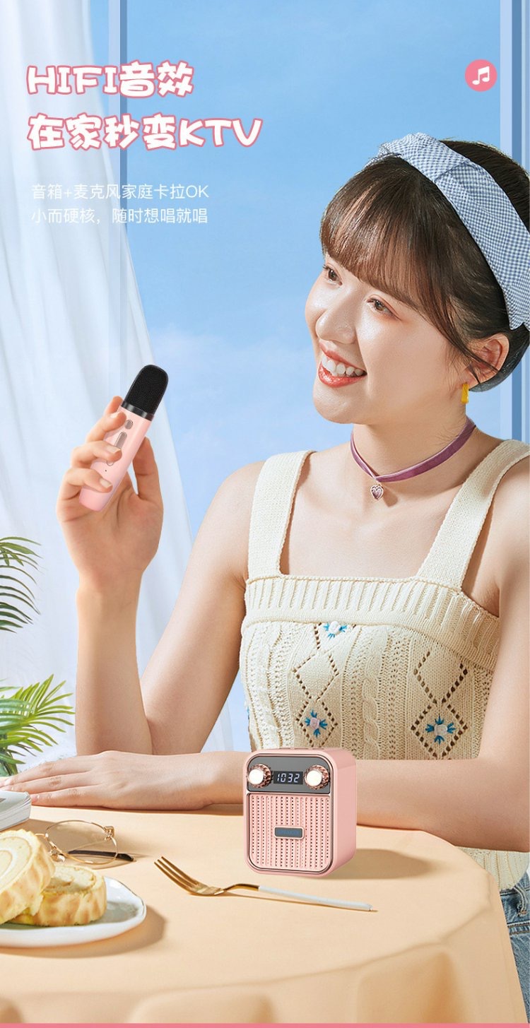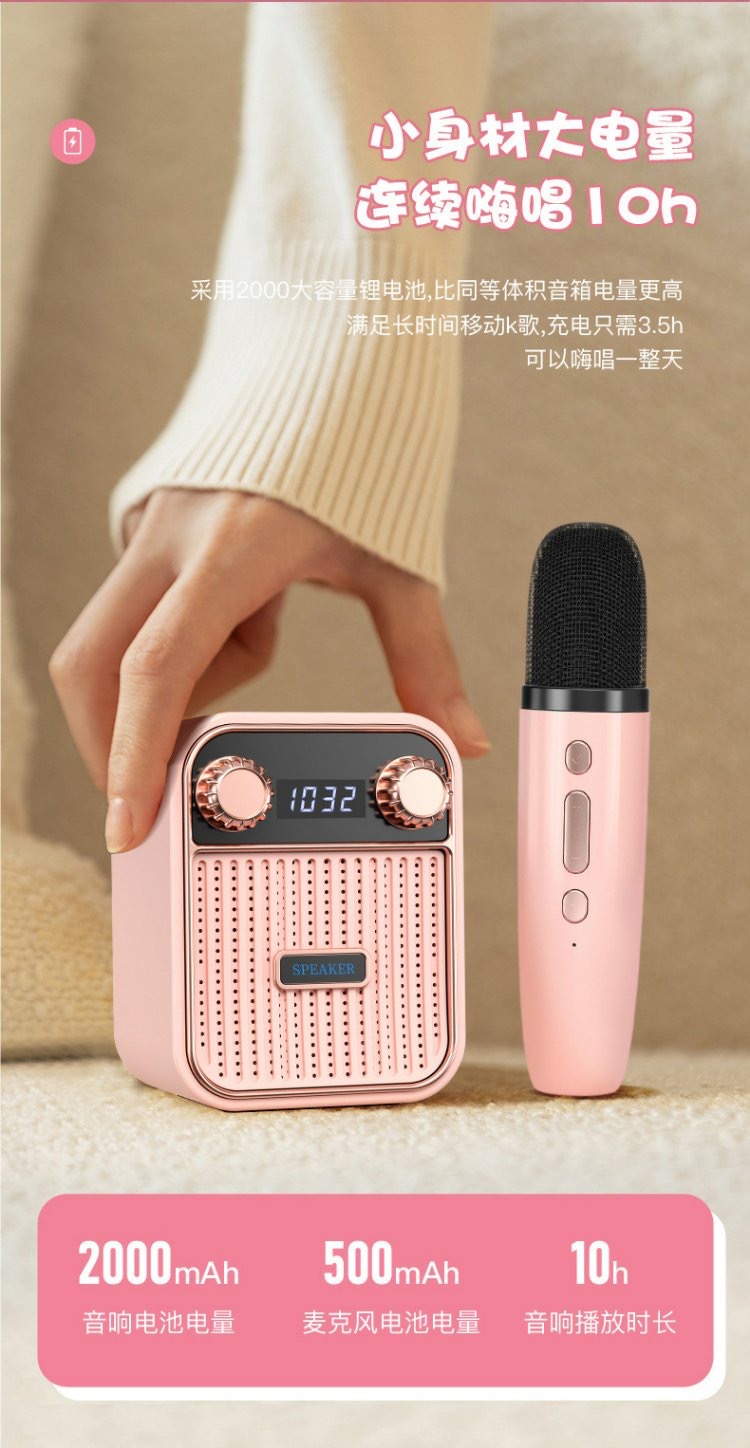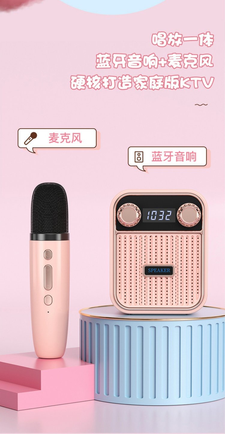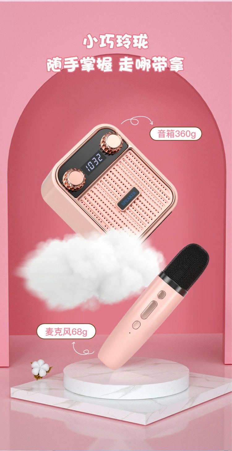 2023款手机唱歌机K18家用麦克风蓝牙迷你话筒音响低音炮户外音箱