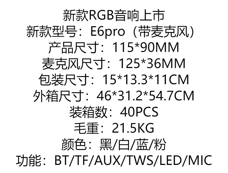 E6pro蓝牙音响RGB氛围灯网红抖音爆款无线蓝牙音箱带麦克风K歌迷