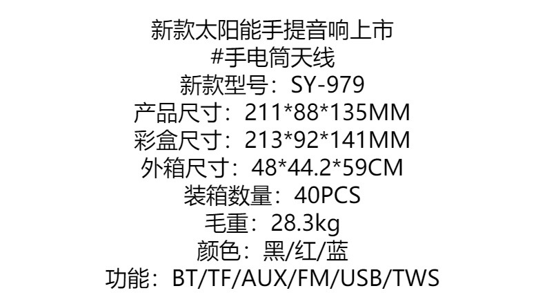 SY-979太阳能收音机蓝牙音箱灯户外手电筒手机支架多功能音响工厂