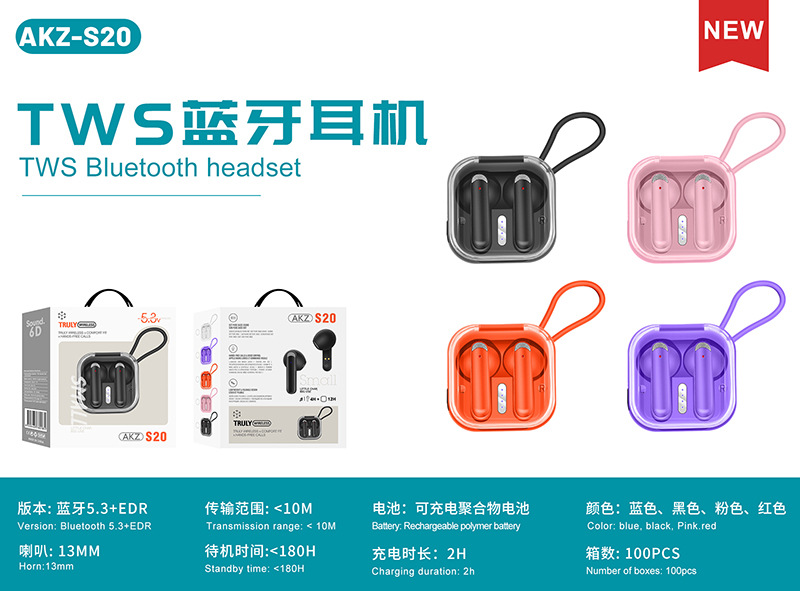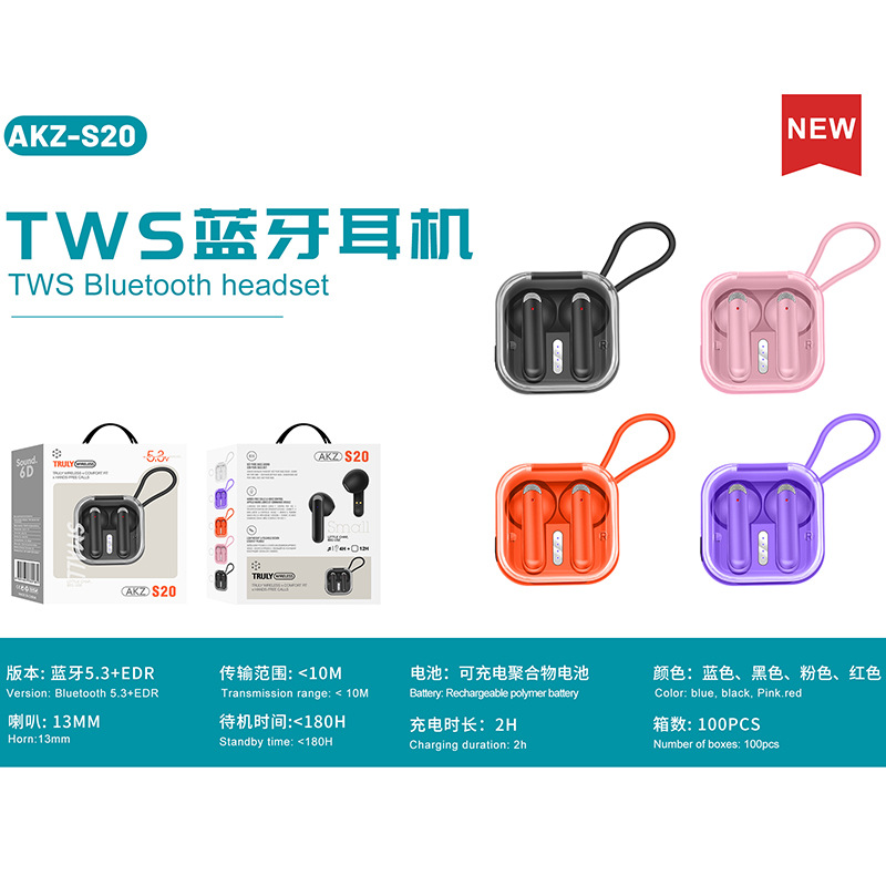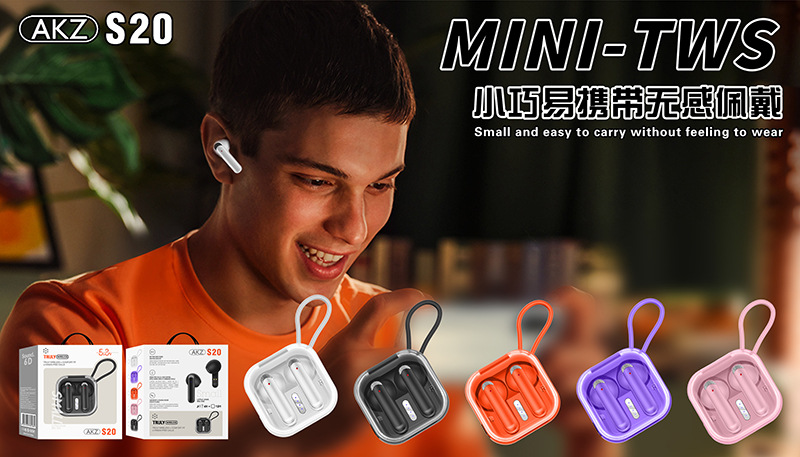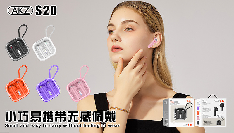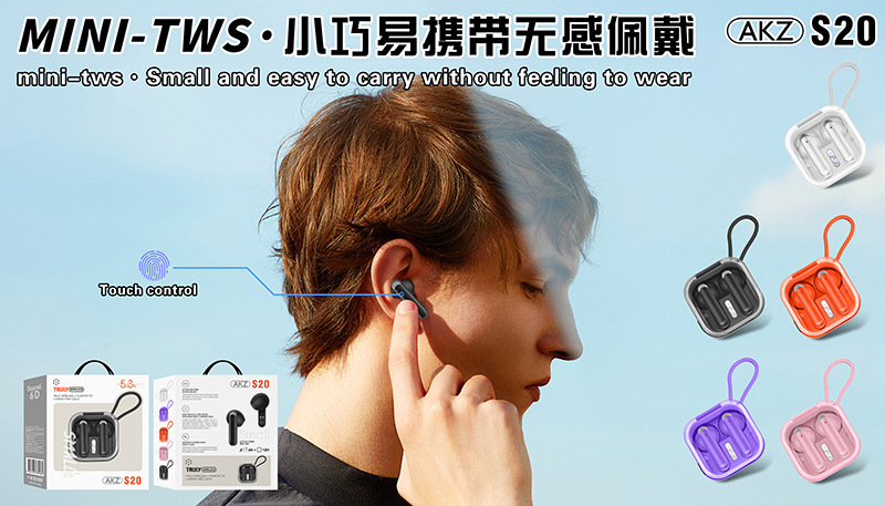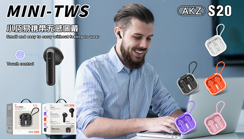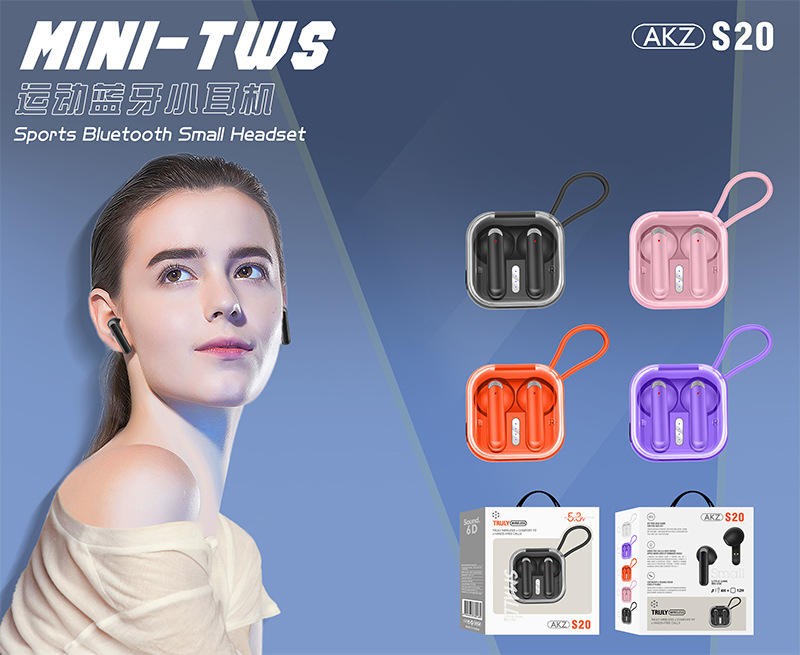安卓通用无线蓝牙耳机AKZ-S20立体声迷你无延迟游戏耳机触控TWS入