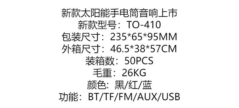 TO-410太阳能手电筒蓝牙音响户外便携收音手机支架无线蓝牙音箱