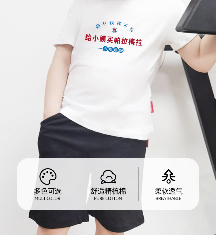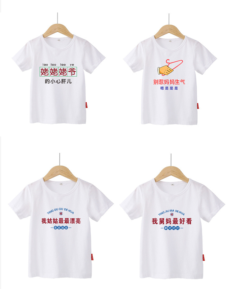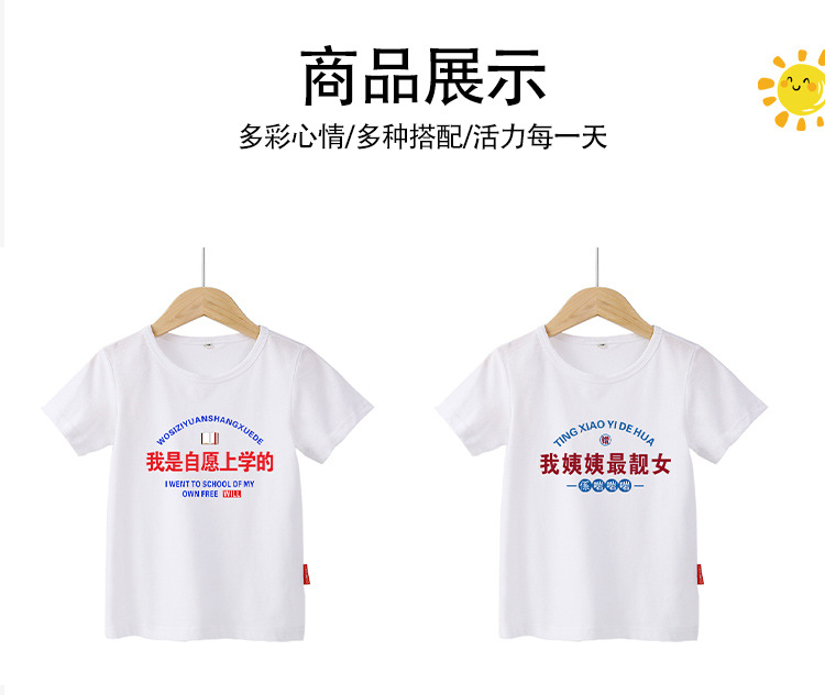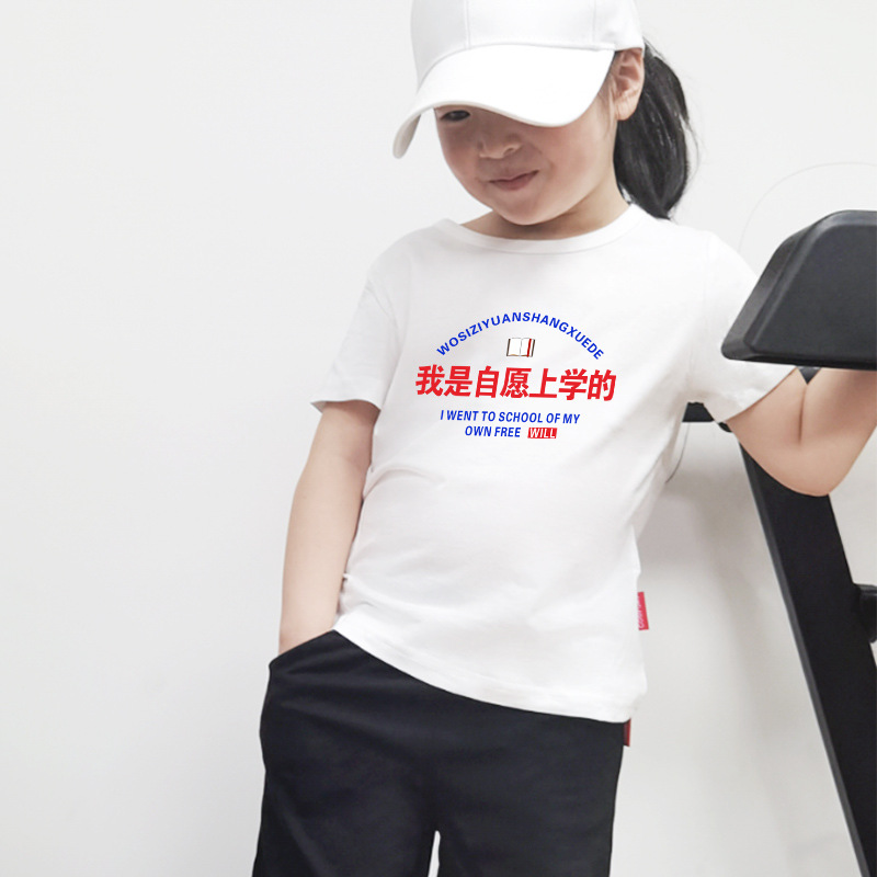 我是自己愿上学的儿童短袖T恤纯棉小姨姥姥好看男童女童半袖体恤