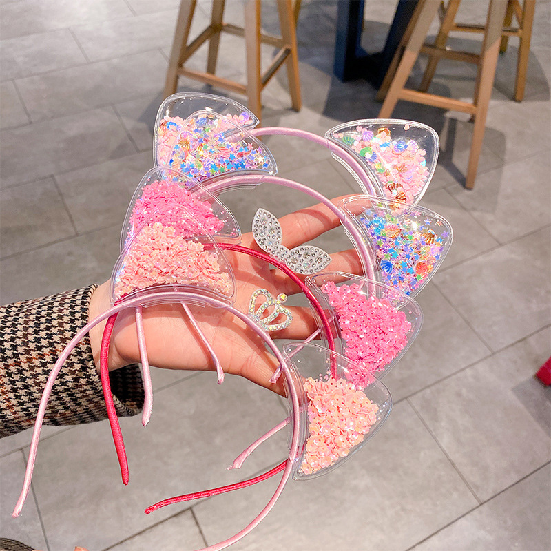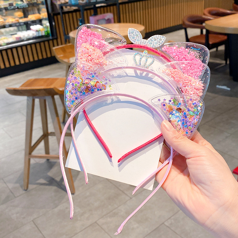 猫耳朵发箍透明流沙皇冠头箍儿童女童宝宝小女孩公主发饰发卡可爱