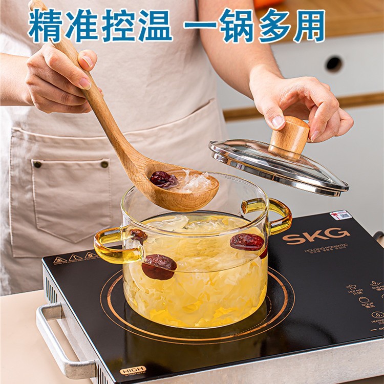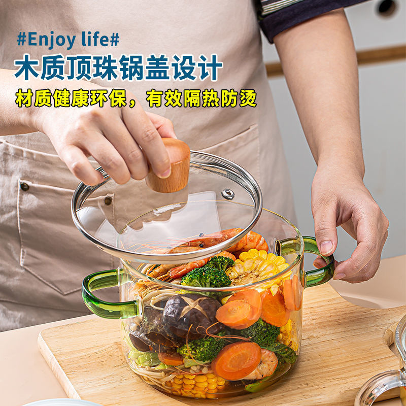 加厚耐高温透明玻璃双把锅家用可电陶炉煲汤炖煮锅带盖泡面锅