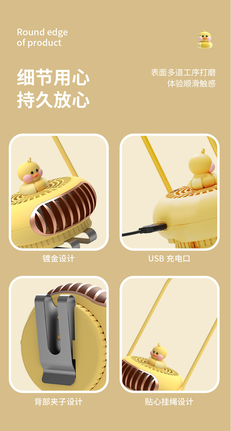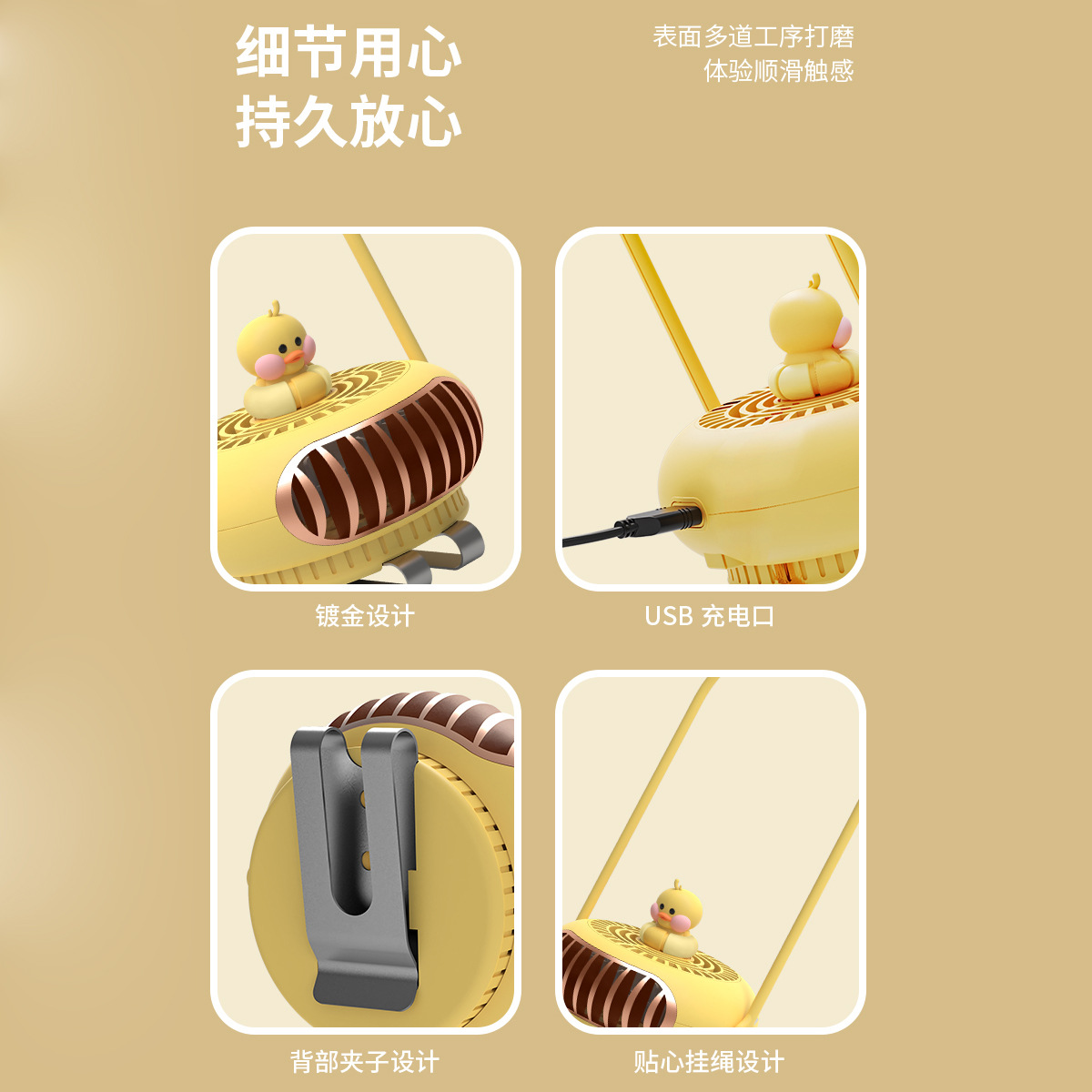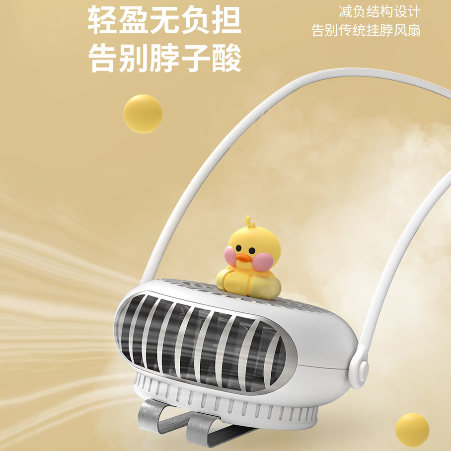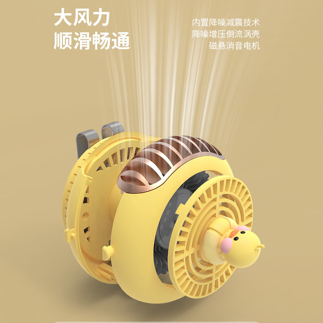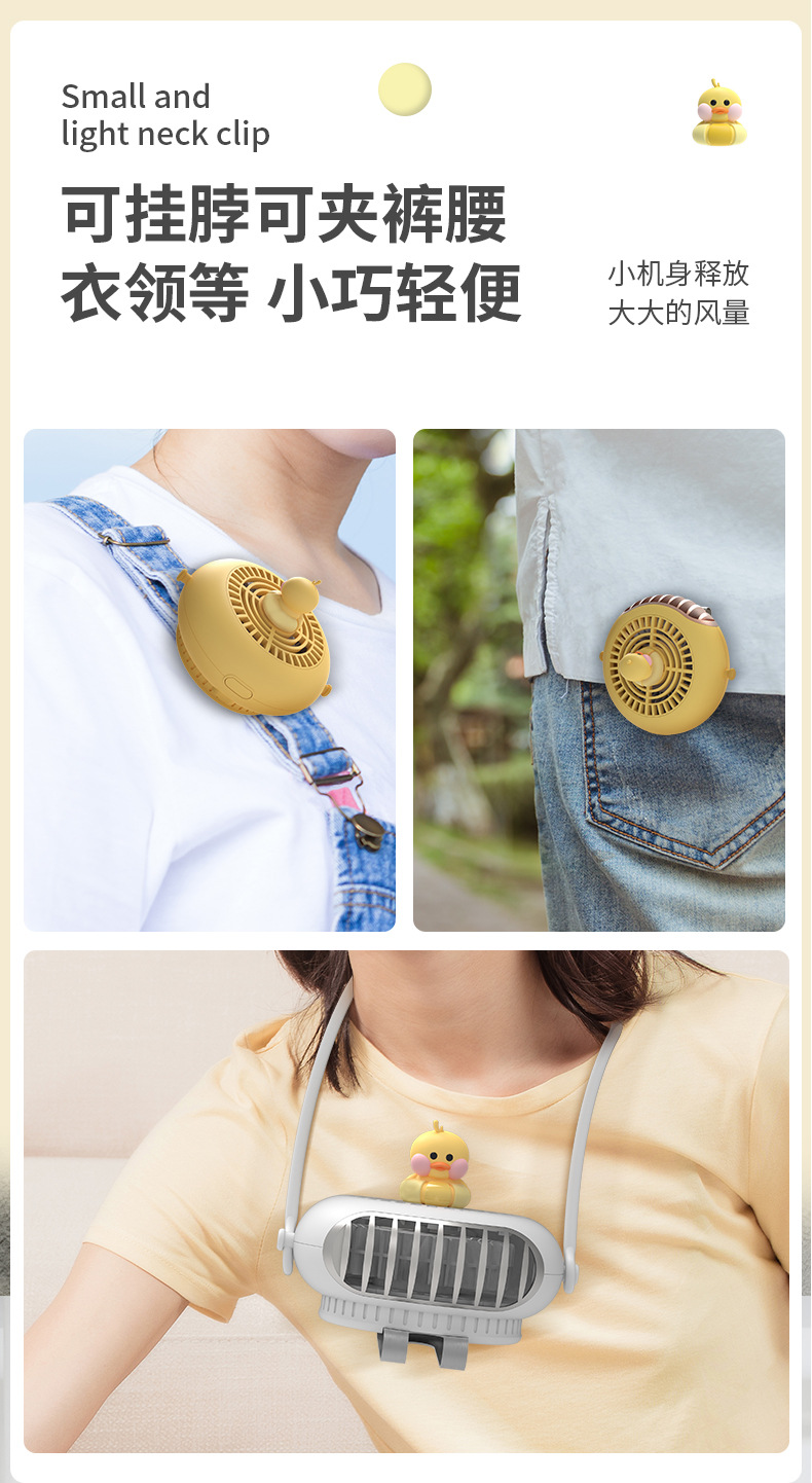 挂脖桌面无叶小风扇 小黄鸭风扇 驱蚊七彩温馨灯光静音电风扇户外
