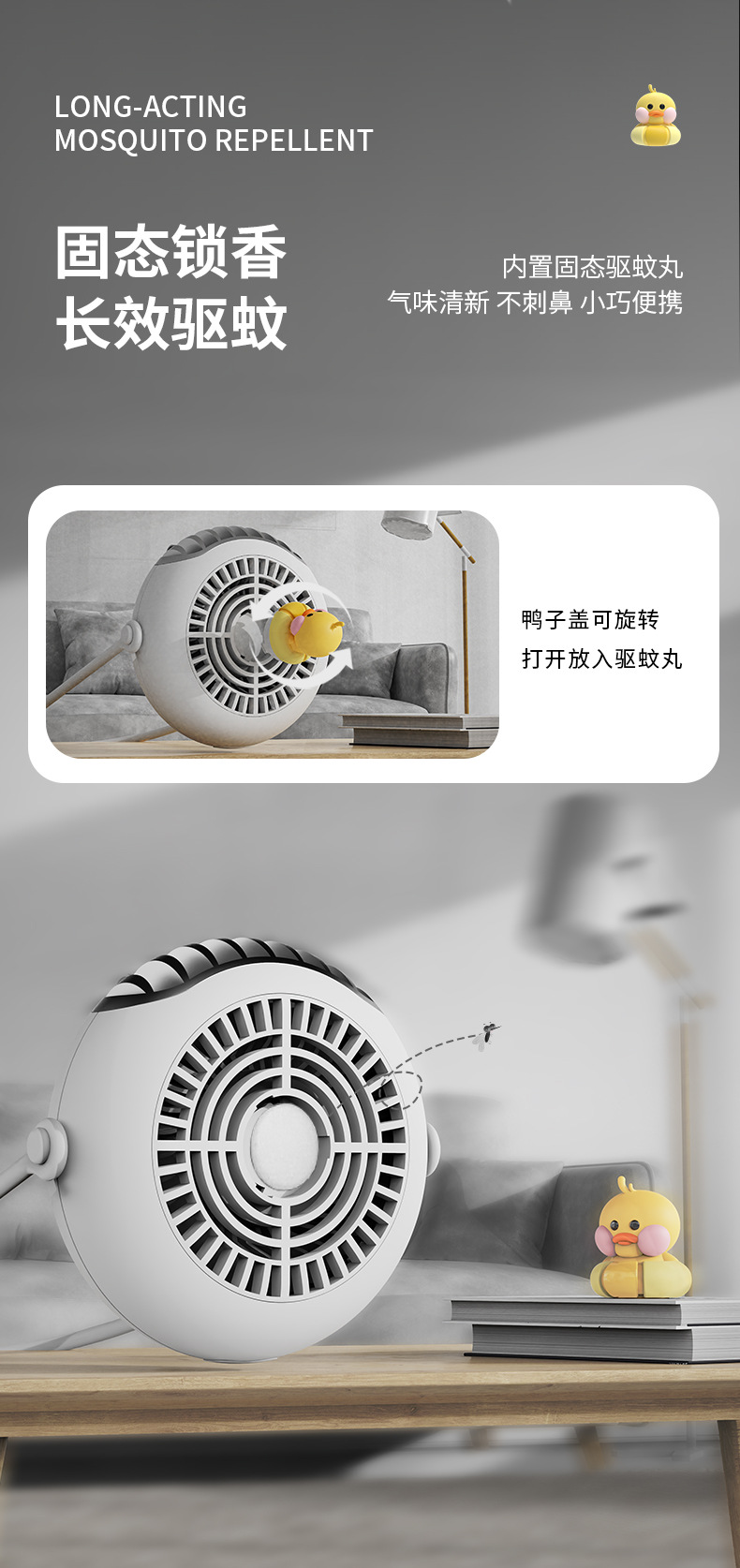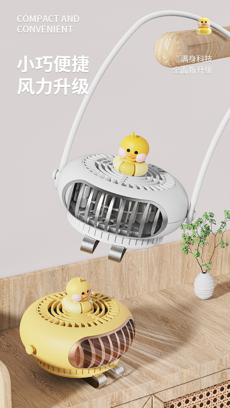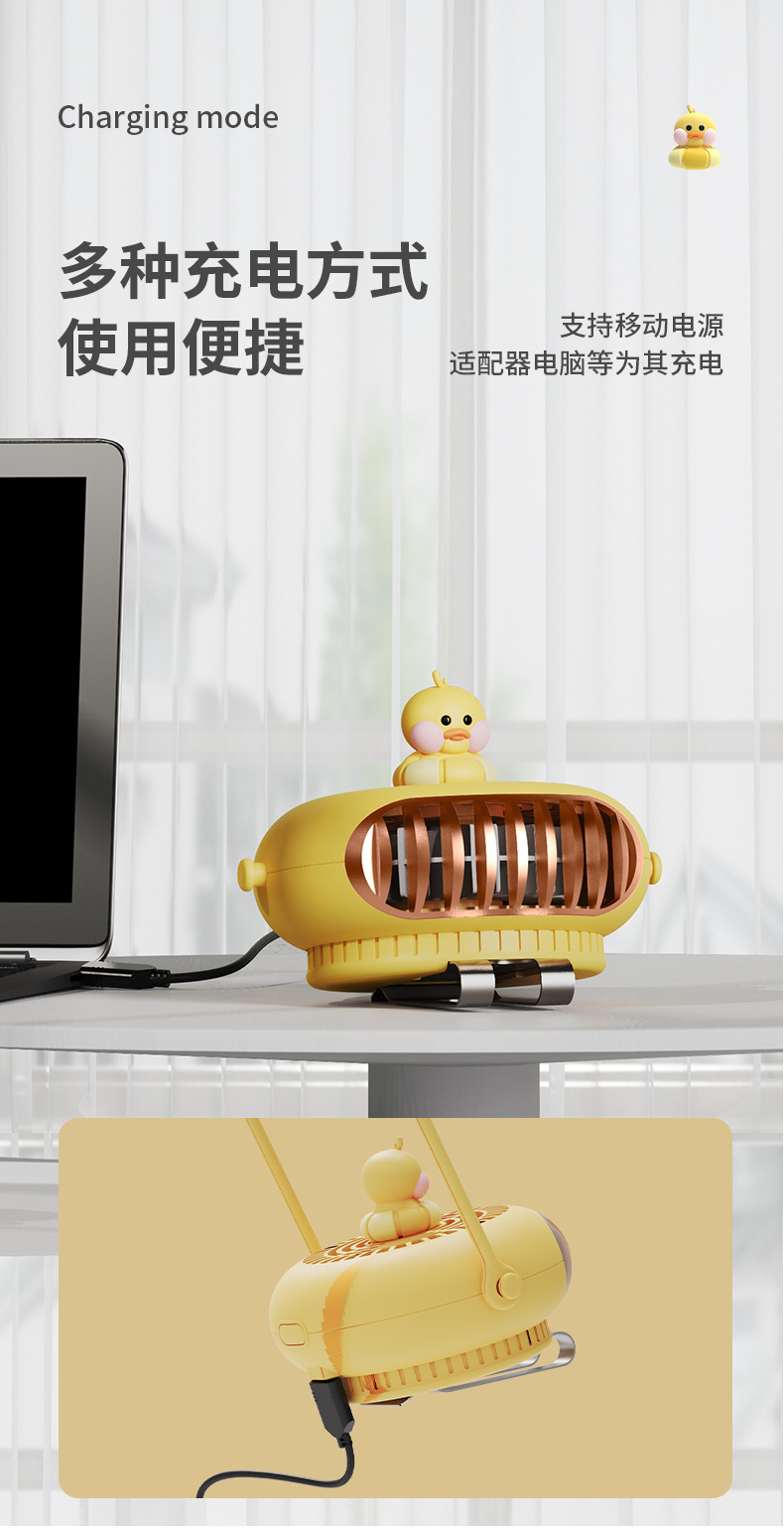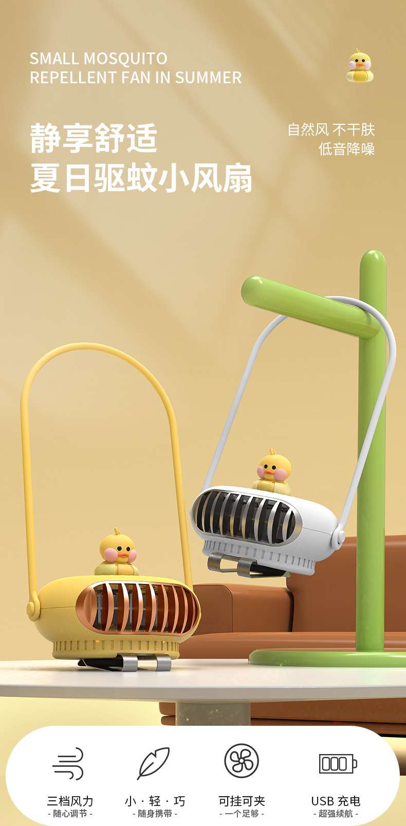 挂脖桌面无叶小风扇 小黄鸭风扇 驱蚊七彩温馨灯光静音电风扇户外