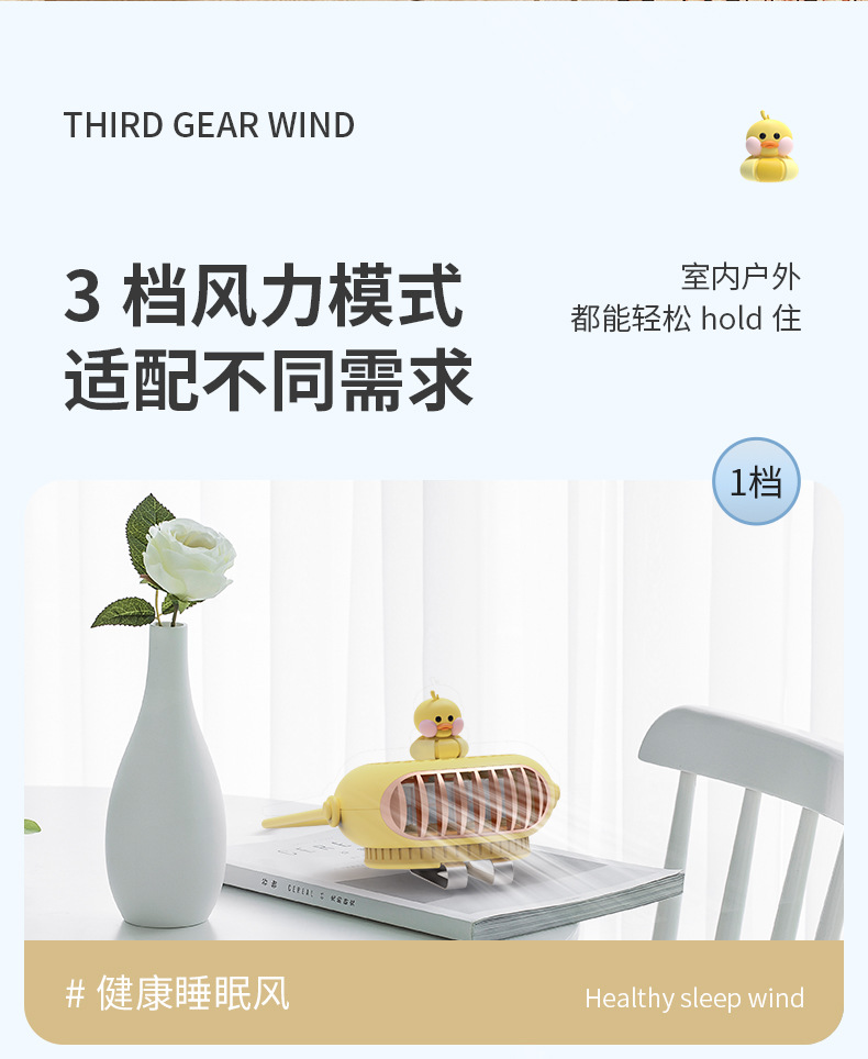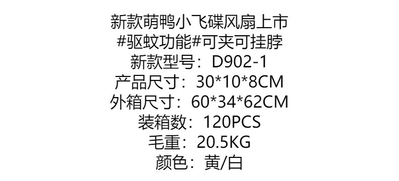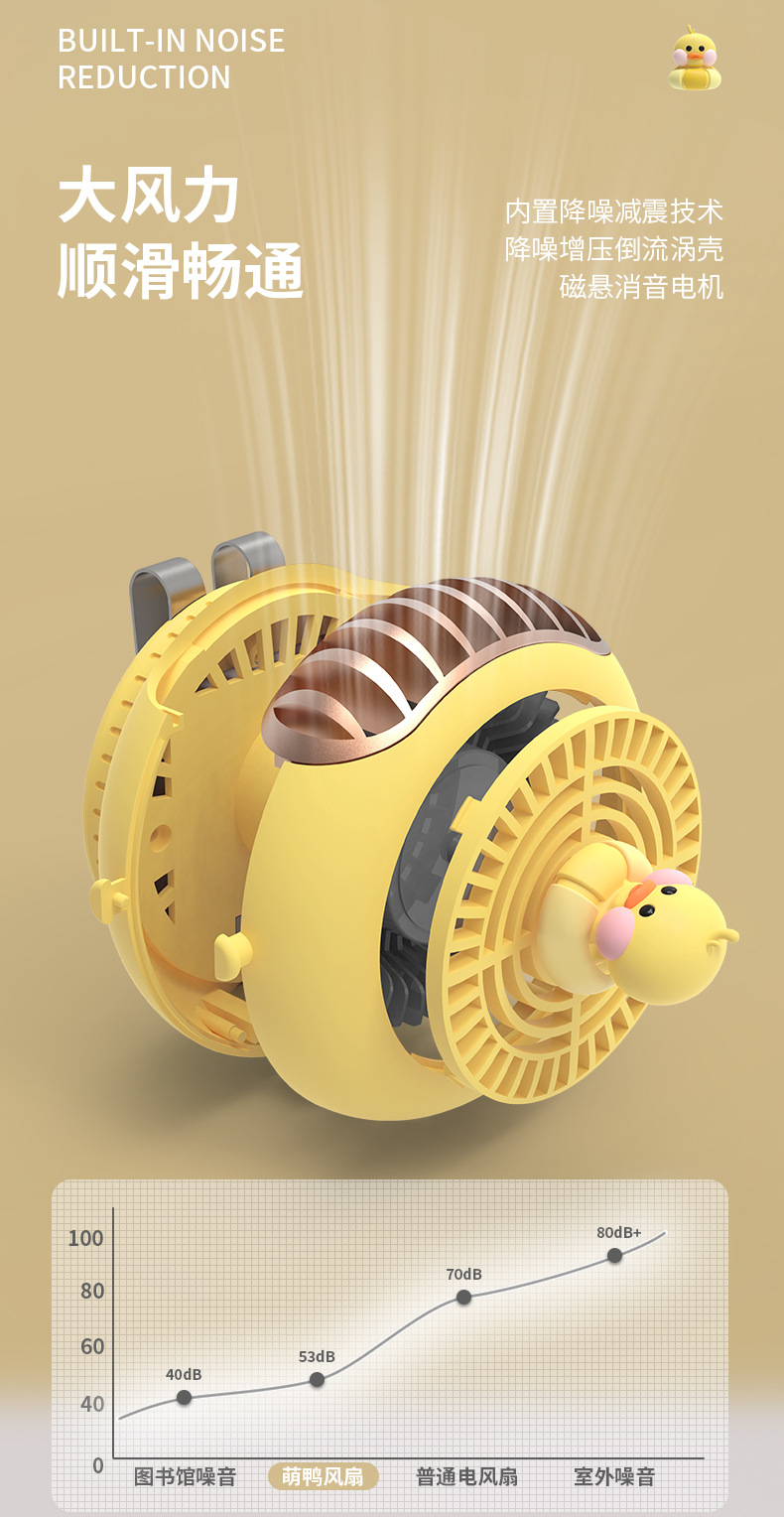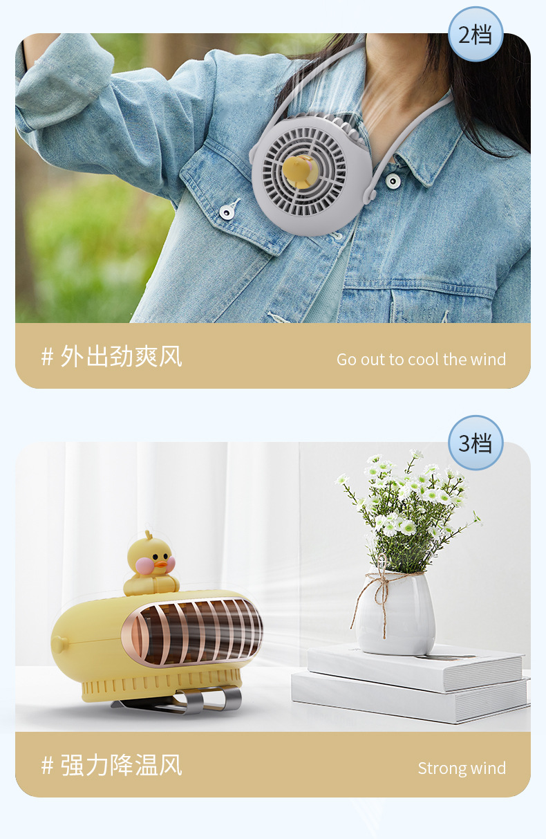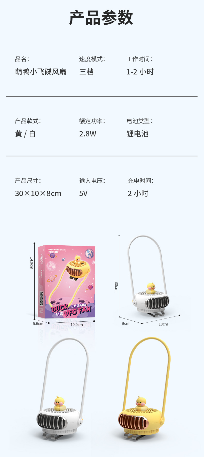 挂脖桌面无叶小风扇 小黄鸭风扇 驱蚊七彩温馨灯光静音电风扇户外