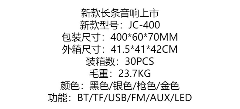 JC-400长条蓝牙音箱户外家用创意火焰灯低音炮台式有线电脑音响批