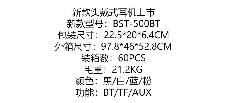 BST-500BT高音质耳机重低音头戴式耳机运动无线蓝牙耳机批发耳麦
