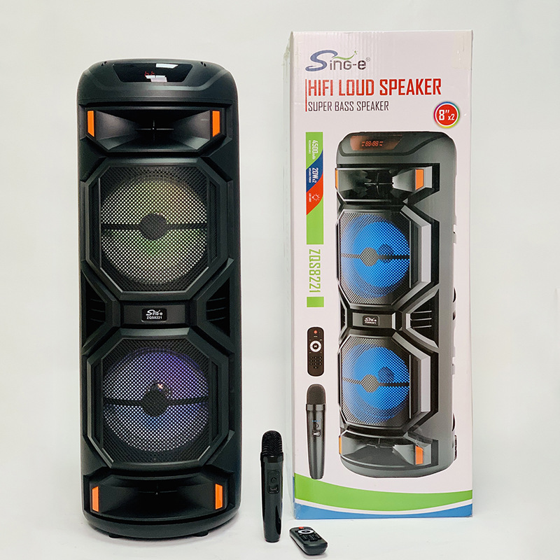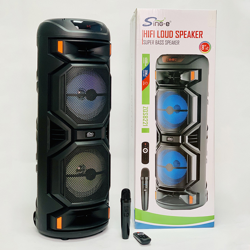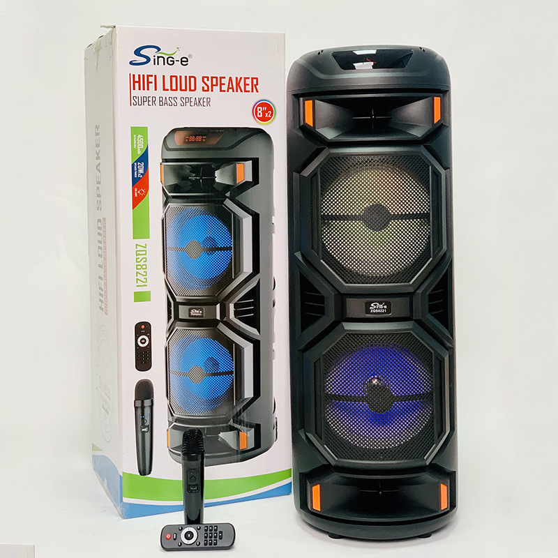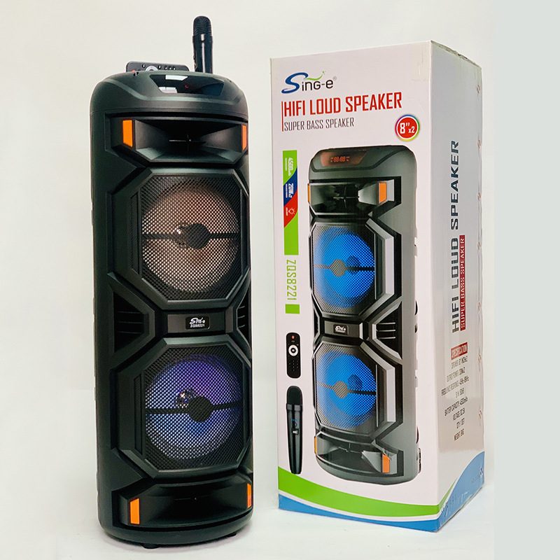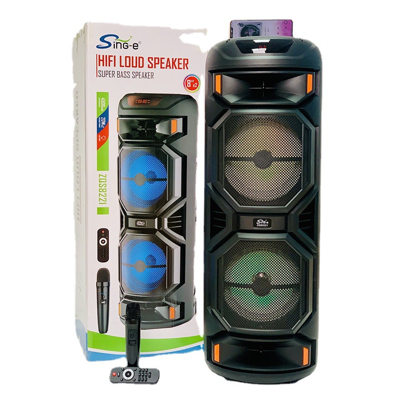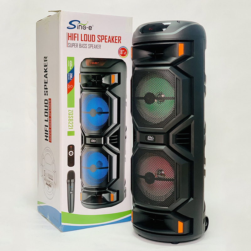 ZQS8221户外双喇叭彩灯蓝牙音箱广场舞k歌无线麦克风音响