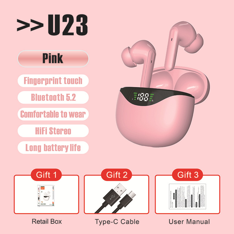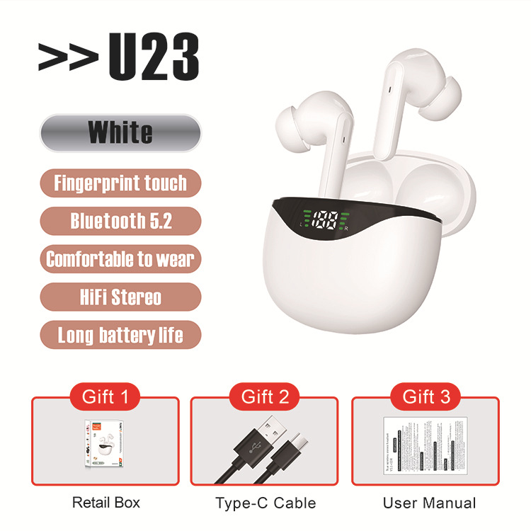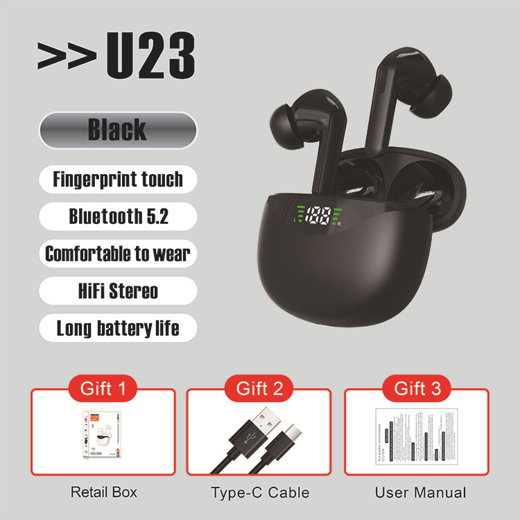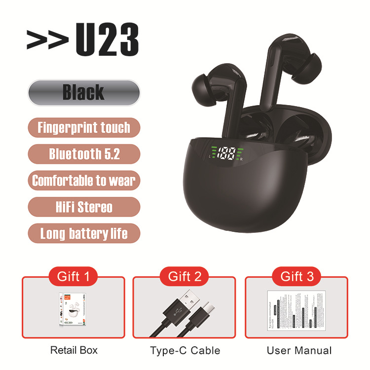 工厂新款 U23无线蓝牙耳机重低音降噪高音质耳机数显触摸蓝牙耳机