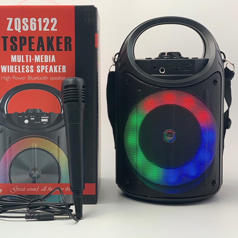 新款蓝牙音箱色彩灯便携式户外大音量手提6寸肩带音响ZQS6122